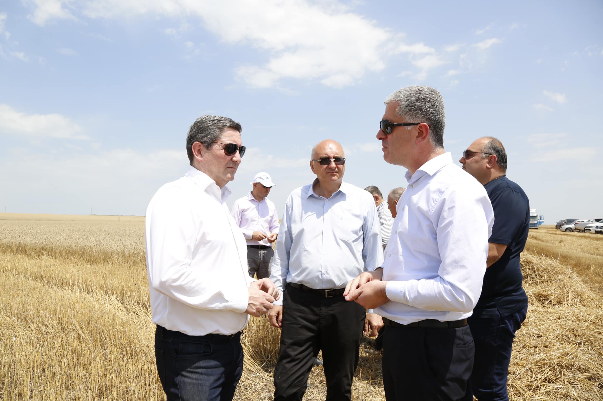 გარემოს დაცვისა და სოფლის მეურნეობის მინისტრი ოთარ შამუგია, აგრარულ საკითხთა კომიტეტის თავმჯდომარის პირველი მოადგილე გელა სამხარაული, კახეთის მხარის რწმუნებული ირაკლი შიოშვილი და დედოფლისწყაროს მერი ნიკოლოზ ჯანიაშვილი ხორბლის და ქერის მოსავლის აღების პროცესს დედოფლისწყაროში გაეცნენ.