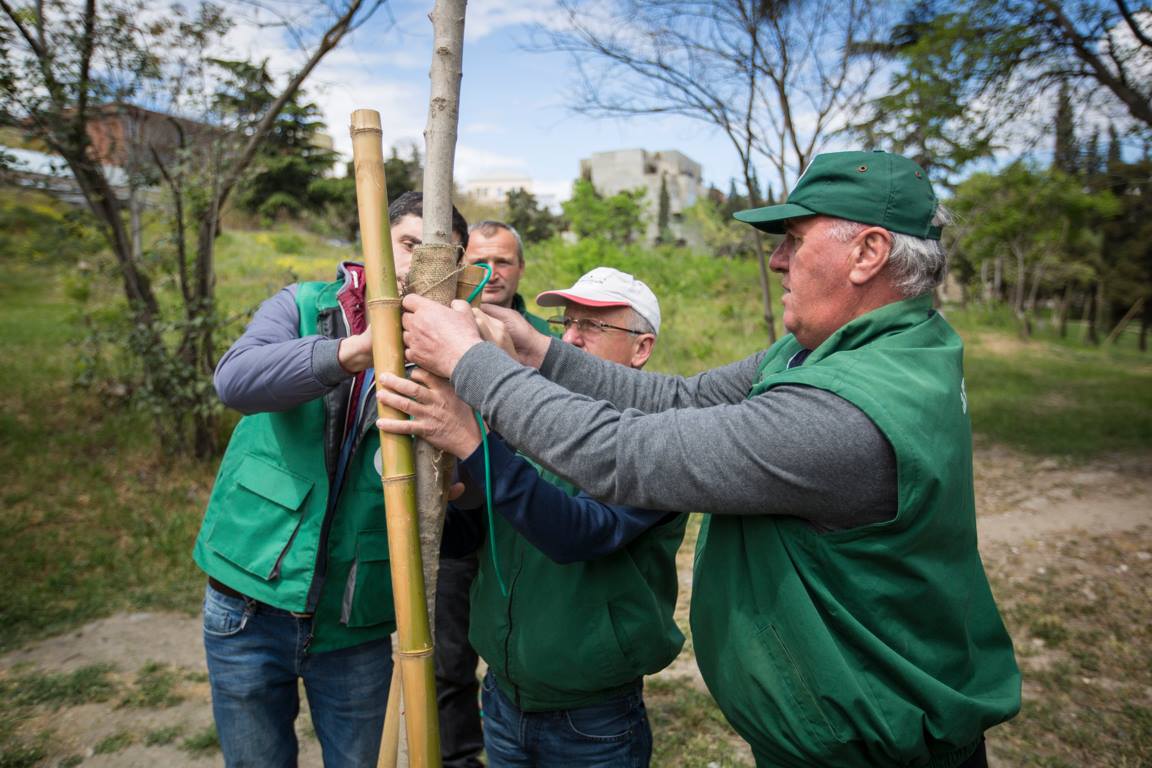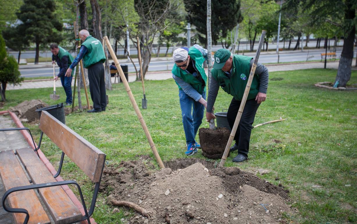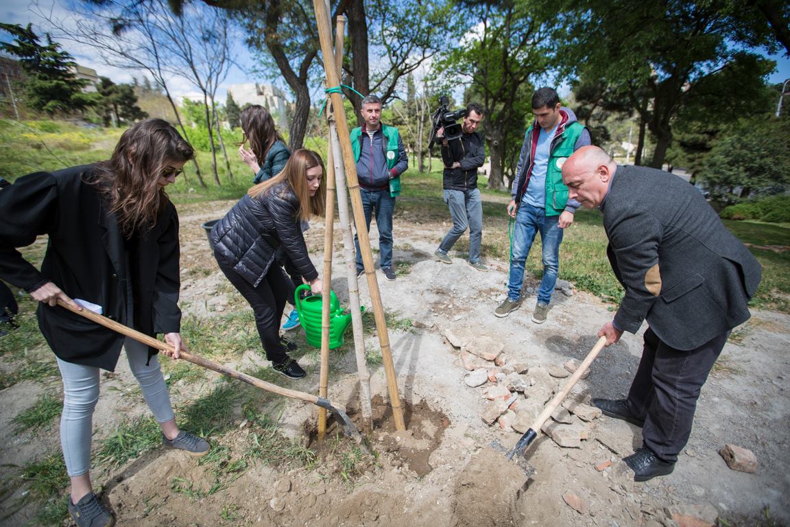 On the initiative of the Ministry of Environmental Protection and Agriculture of Georgia, with relevance to the Earth Day, the tree-planting campaigns were conducted at 300 Aragveli Square. Nino Tandilashvili, Deputy Minister of Environmental Protection and Agriculture participated in the campaign together with the journalists. Within the scope of the event, according to the urban green space standards, the maple and oak seedlings were planted.