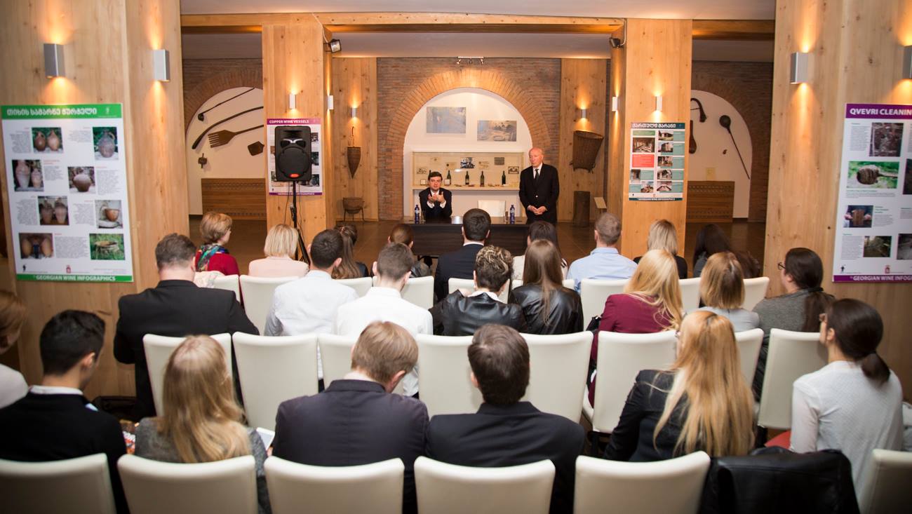 At the meeting, Nodar Kereselidze introduced students with the main directions under the consolidated Ministry and drew his attention to the implemented and ongoing agrarian and environmental projects. The First Deputy Minister brought forward 8,000 years of continuous tradition of Georgian wines, the rules of wine making and export potential of Georgian products.