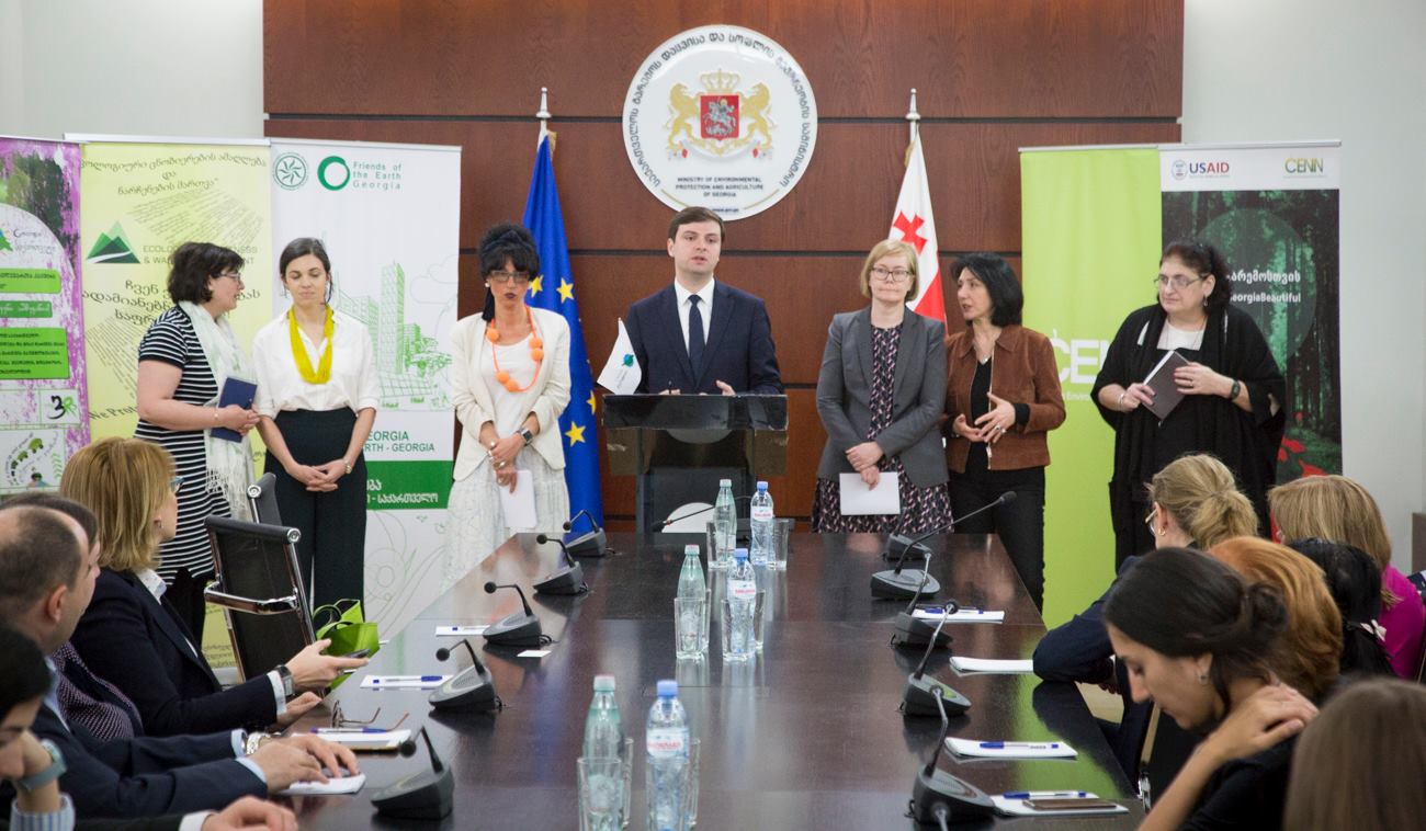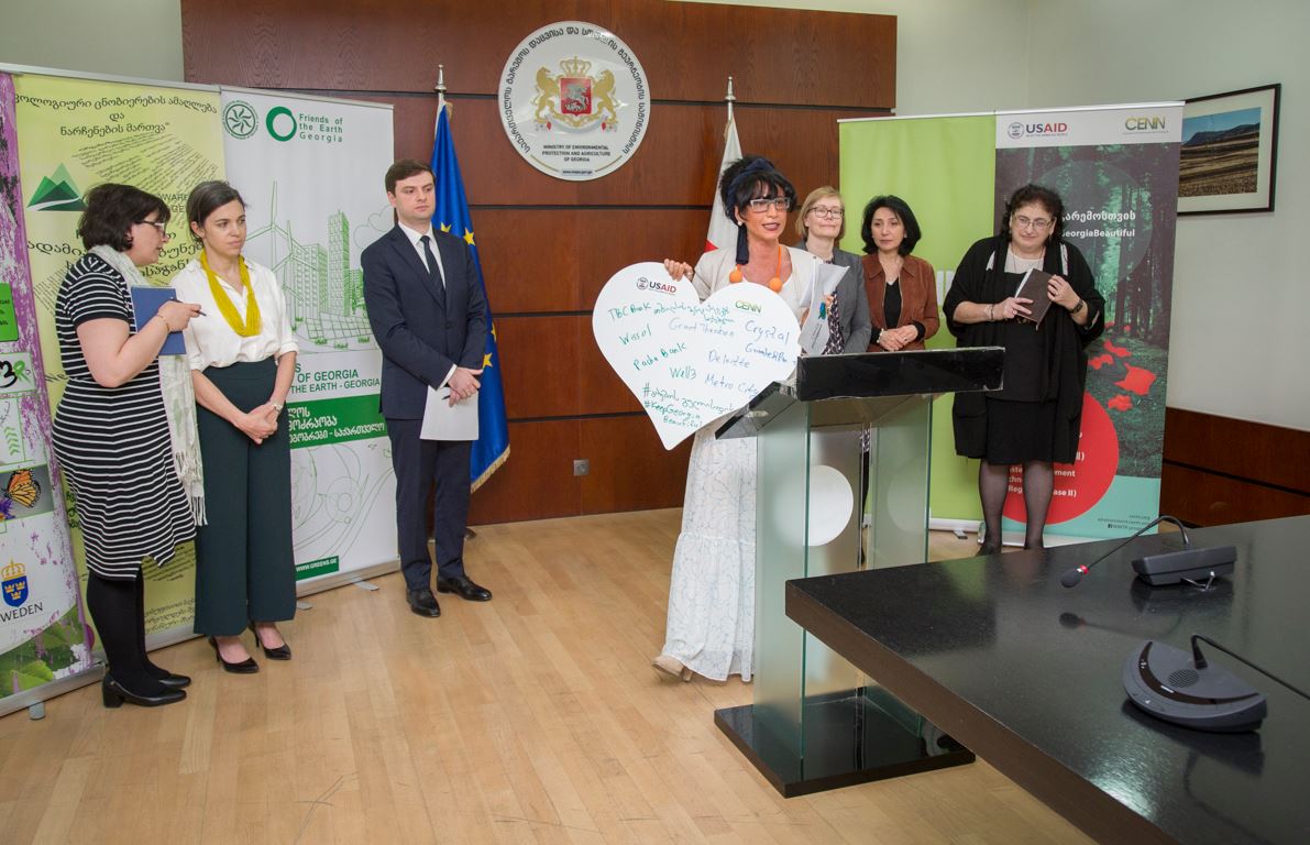 Today's event was attended by Ambassador Extraordinary and Plenipotentiary of the Kingdom of Sweden, Martina Quick, USAID/Georgia Economic Growth Office Director Veronica Lee, Head of Development Cooperation of Sweden in Georgia Molly Lien, Greens Movement of Georgia /Nino Chkhobadze, Caucasus Environmental NGO Network (CENN) Executive Director Nana Janashia, Union of Nature Researchers in Georgia "Orkisi" and "Ecological Consciousness and Waste Management".