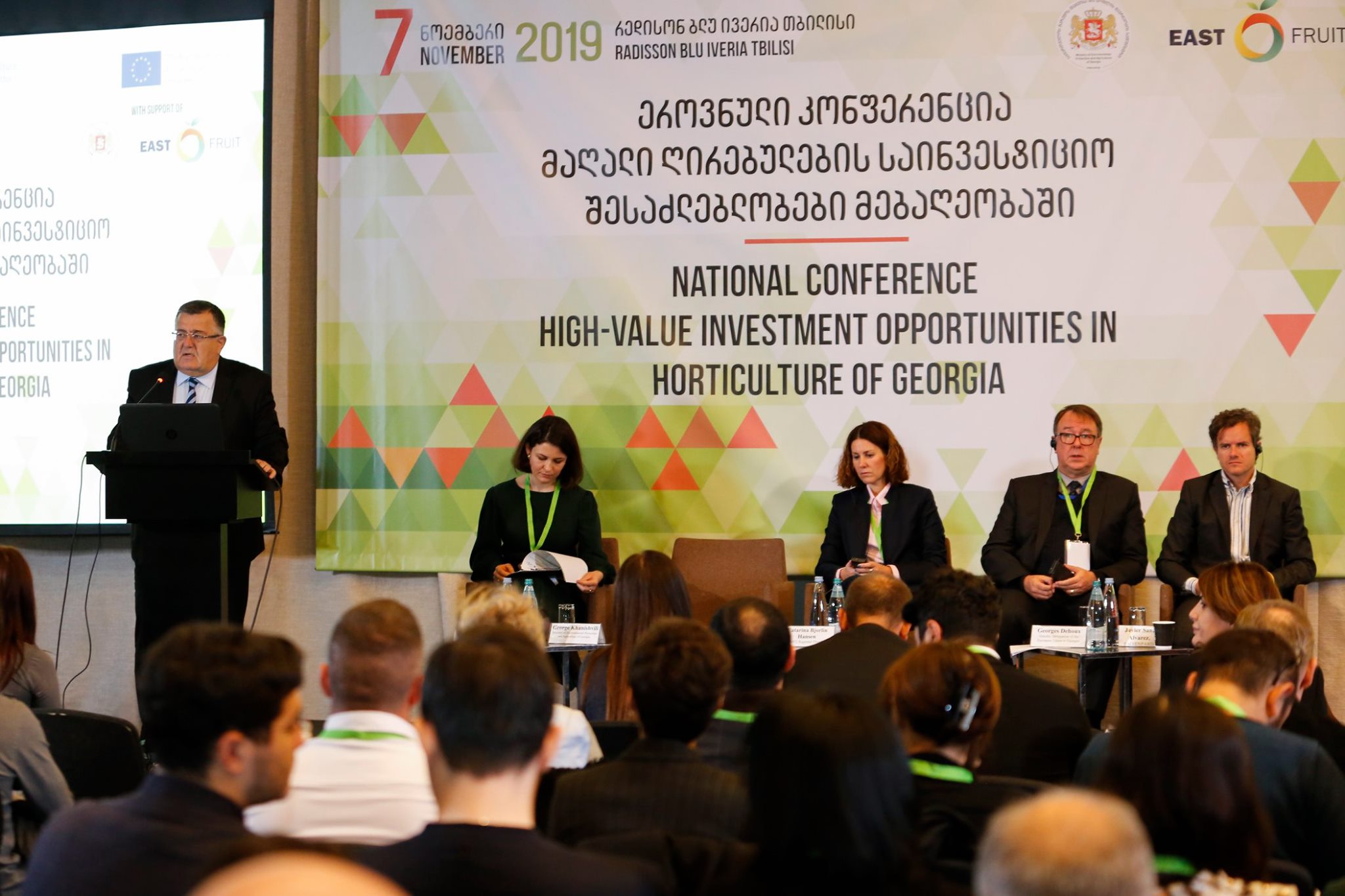 During the conference, the participants discussed perspectives for horticulture development and outlined the investment opportunities in different areas of agriculture sector. The potential for the development of walnut crops, berries and table grapes, as well as prospects for Georgia to become a logistics hub for fresh fruits and vegetables was brought forward at the meeting.