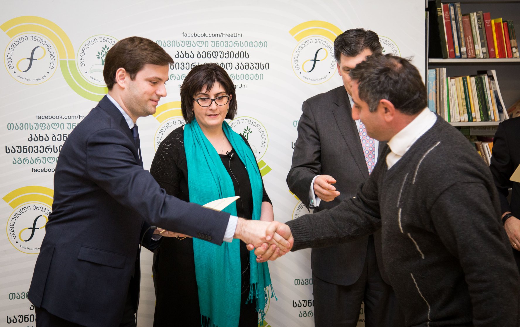 The First Deputy Minister of Environmental Protection and Agriculture, Nodar Kereselidze and USAID's Assistant Administrator for European and Eurasian Issues, Brock Biermen participated in the closing ceremony of the training program. The program included 10 regions of Georgia. 96 theoretical and 60 practical sessions were held in 7 cities with the participation of highly qualified experts. The US is the most important supporting country in rural development –was noted by the Deputy Minister, Nodar Kereselidze. "Development of the extension system is one of the most important components, which contributes to the development of the agricultural sector, through extention we deliver knowledge and information about new agricultural technologies to farmers, we aim to enhance their competitiveness.This certification course project aimed to provide staff of our information-consulting centers (who work with farmers) with new skills, including theoretical and practical knowledge, the project will help them to deliver their knowledge to farmers " - said Nodar Kereselidze. Accordingly, implemention of similar projects in Georgia is of utmost importance. We think we should educate farmers and provide them with the information that will really benefit them in the future, we give them the opportunity to share their knowledge with others to further promote the development of the agricultural sector "said Brock Bierman.