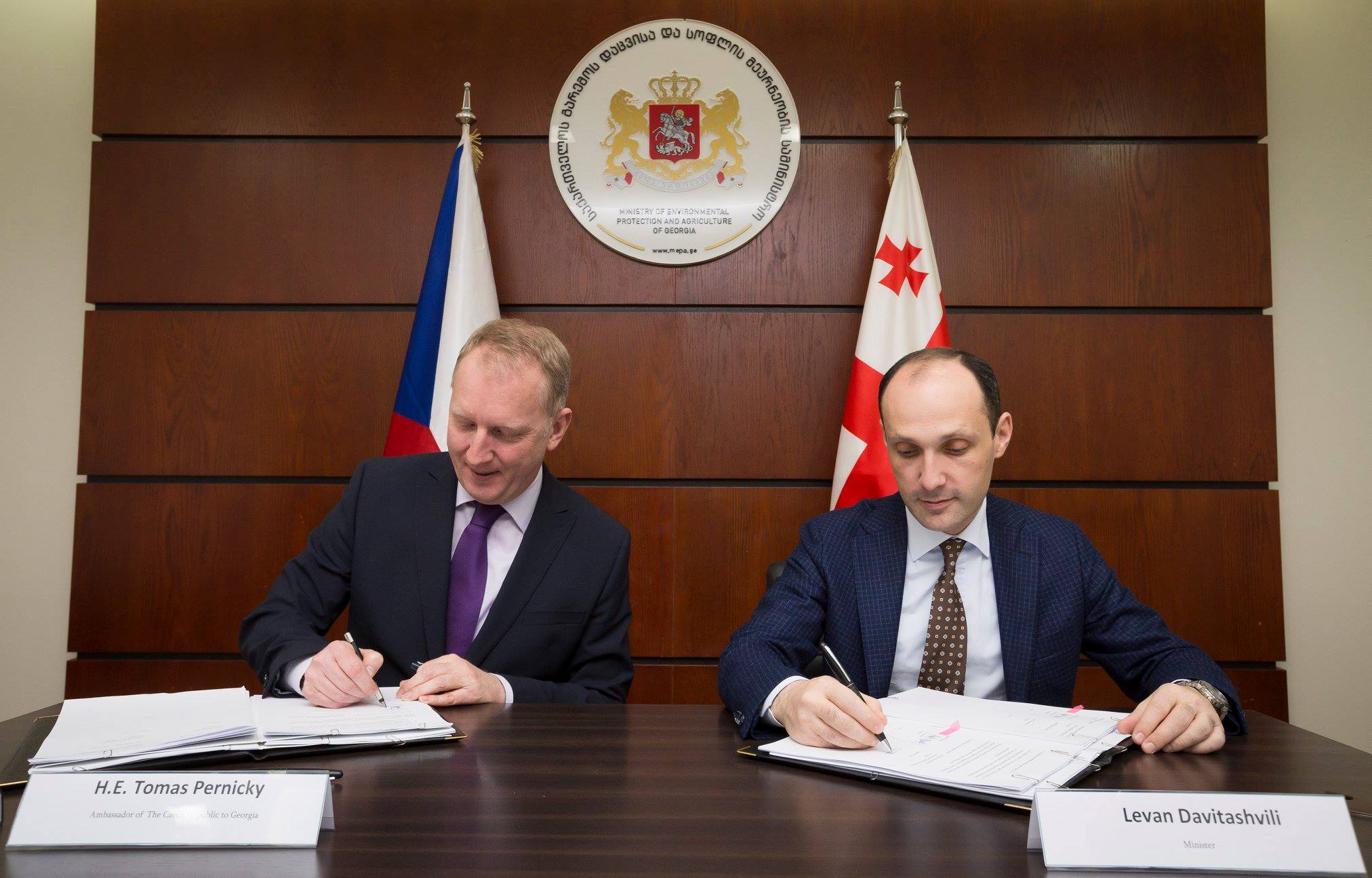 The memorandum was signed by the Minister of Environmental Protection and Agriculture, Levan Davitashvili and Ambassador Extraordinary and Plenipotentiary of the Czech Republic to Georgia Tomas Pernitsky.