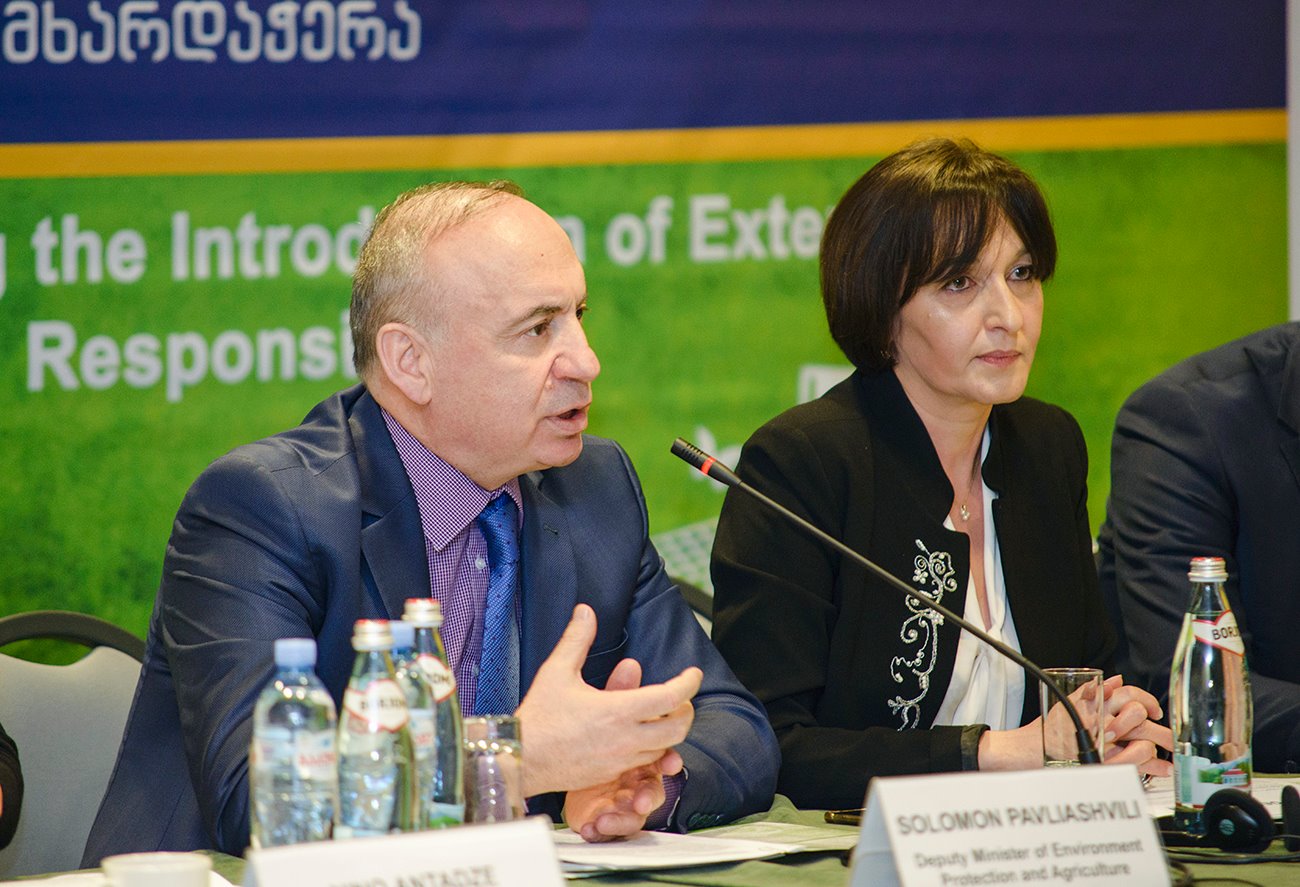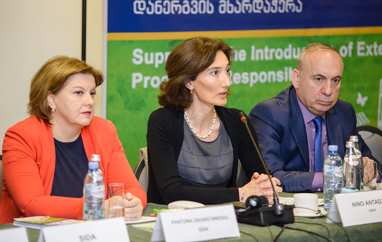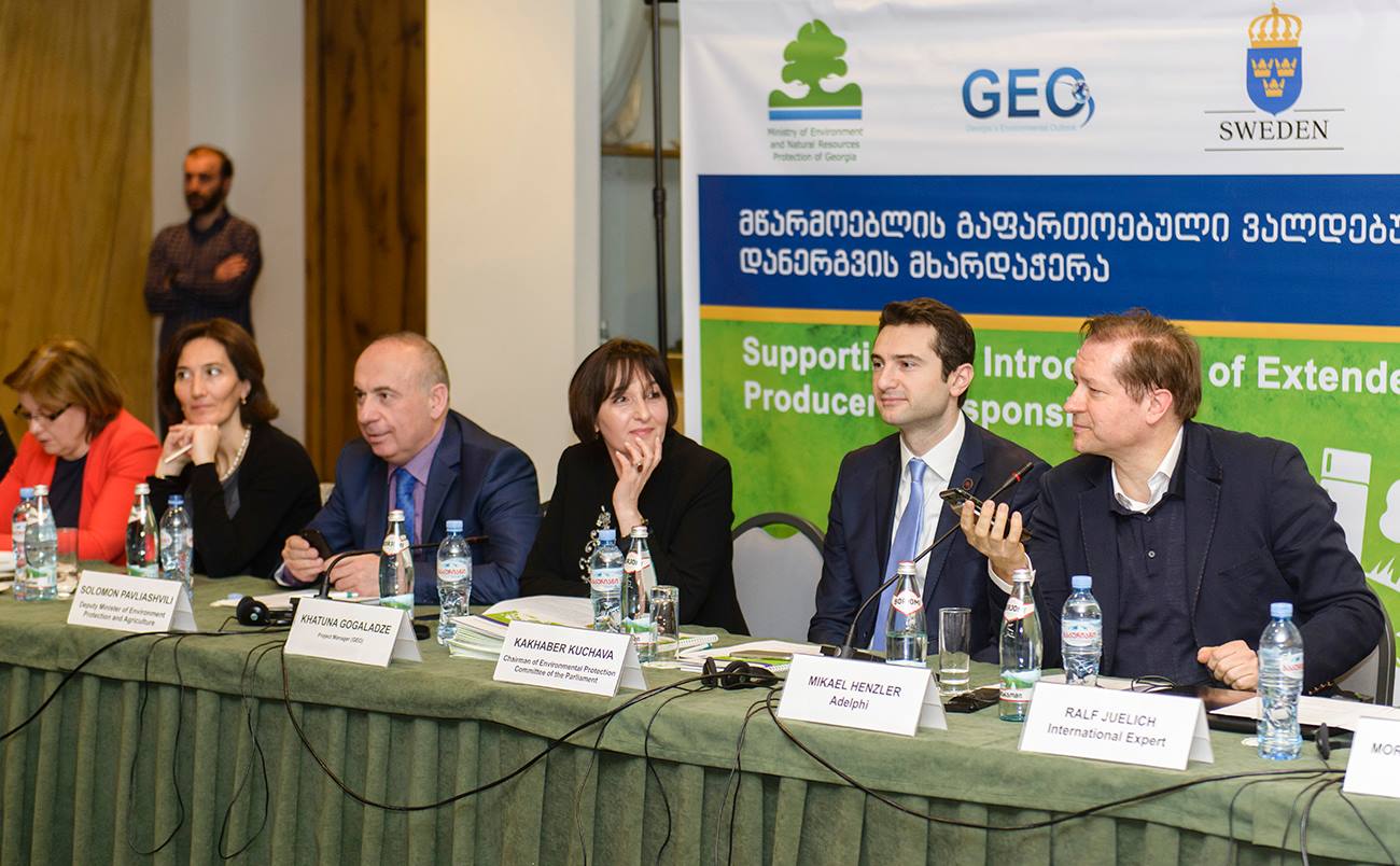 The introduction of the "Extended producer responsibility was discussed at the hotel "Holiday Inn". The Deputy Minister of Environmental Protection and Agriculture, Solomon Pavliashvili has been focused on issues related to the management of waste electronic and electrical equipment, manufacturer's liability law, funding mechanisms, schemes and monitoring system.