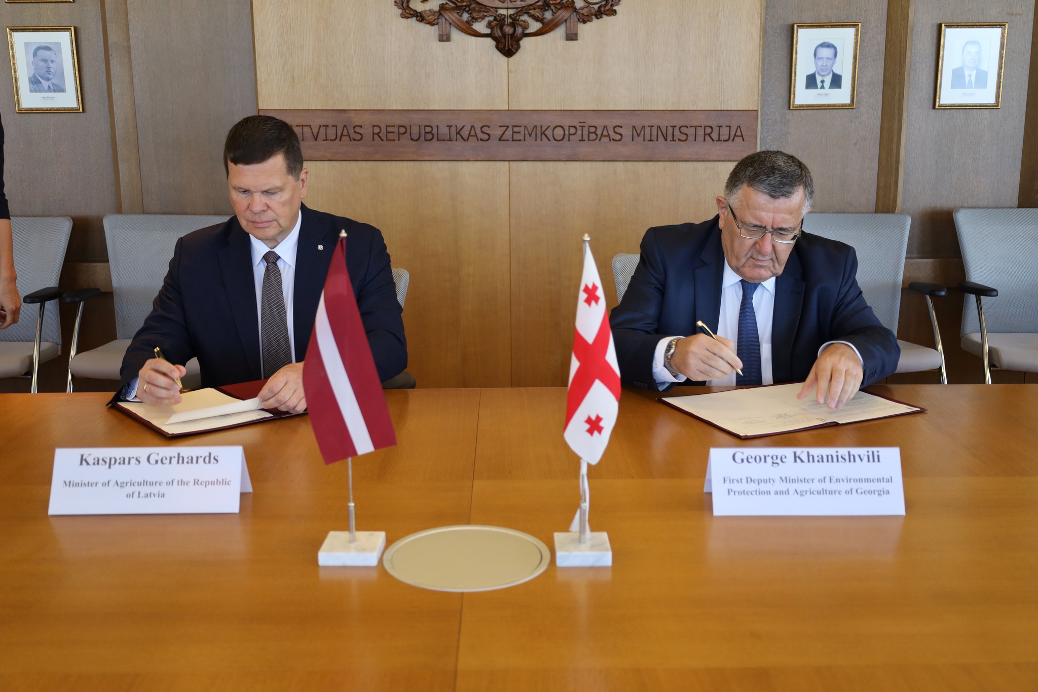 During his visit to the Republic of Latvia, Mr. George Khanishvili and the Minister of Agriculture of Latvia, Mr. Kaspars Gerhards signed a Memorandum of Cooperation (MoC) in the field of agriculture.