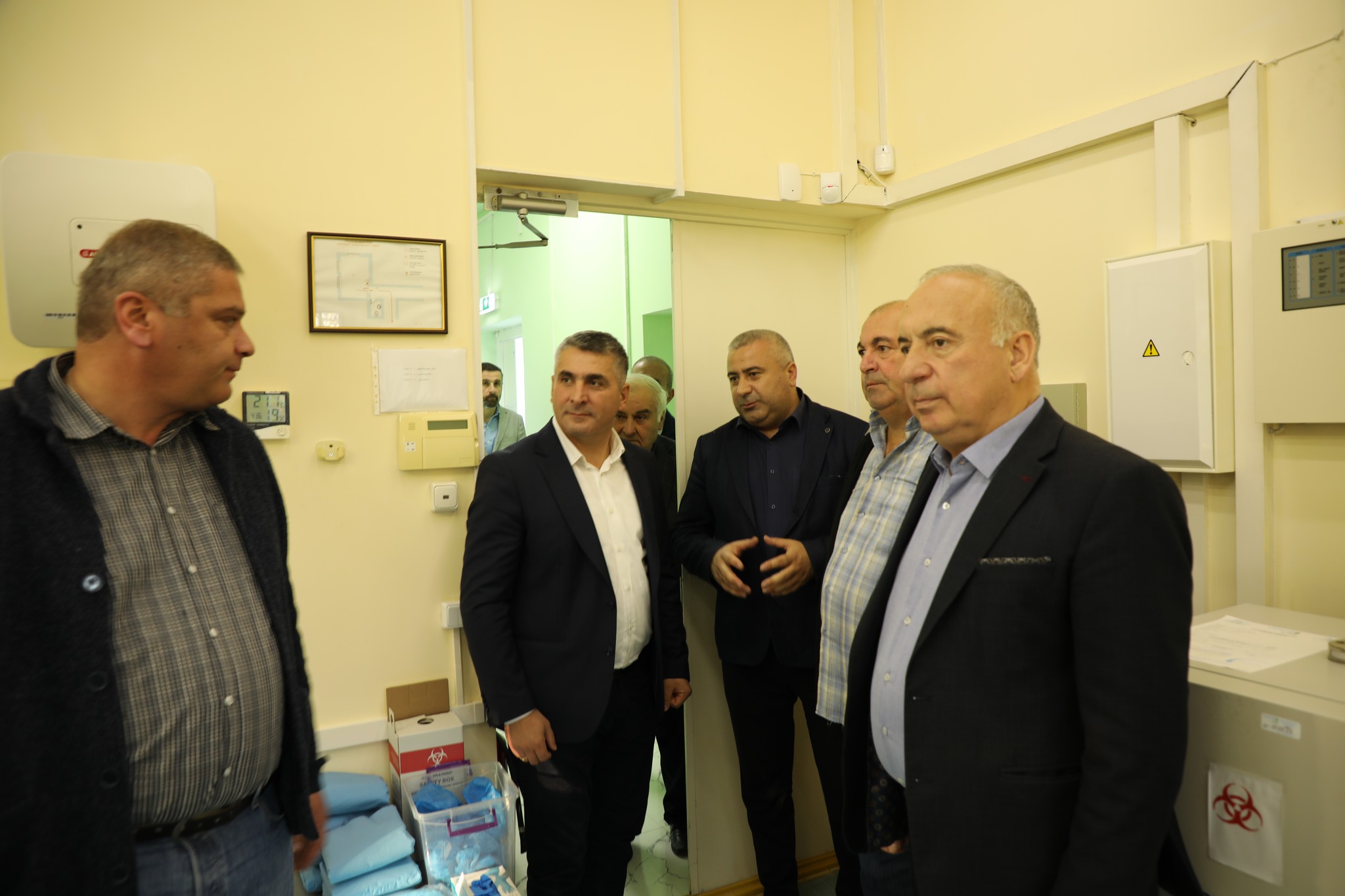 Mr. Solomon Pavliashvili, Deputy Minister of Environmental Protection and Agriculture of Georgia, Mr. Levan Liluashvili, Deputy State Representative of Kakheti region, Mr. Giorgi Machavariani, Mayor of Gurjaani, and Mr. Irakli Guledani, Director of the State Laboratory of Agriculture, attended the meeting at the Gurjaani laboratory.