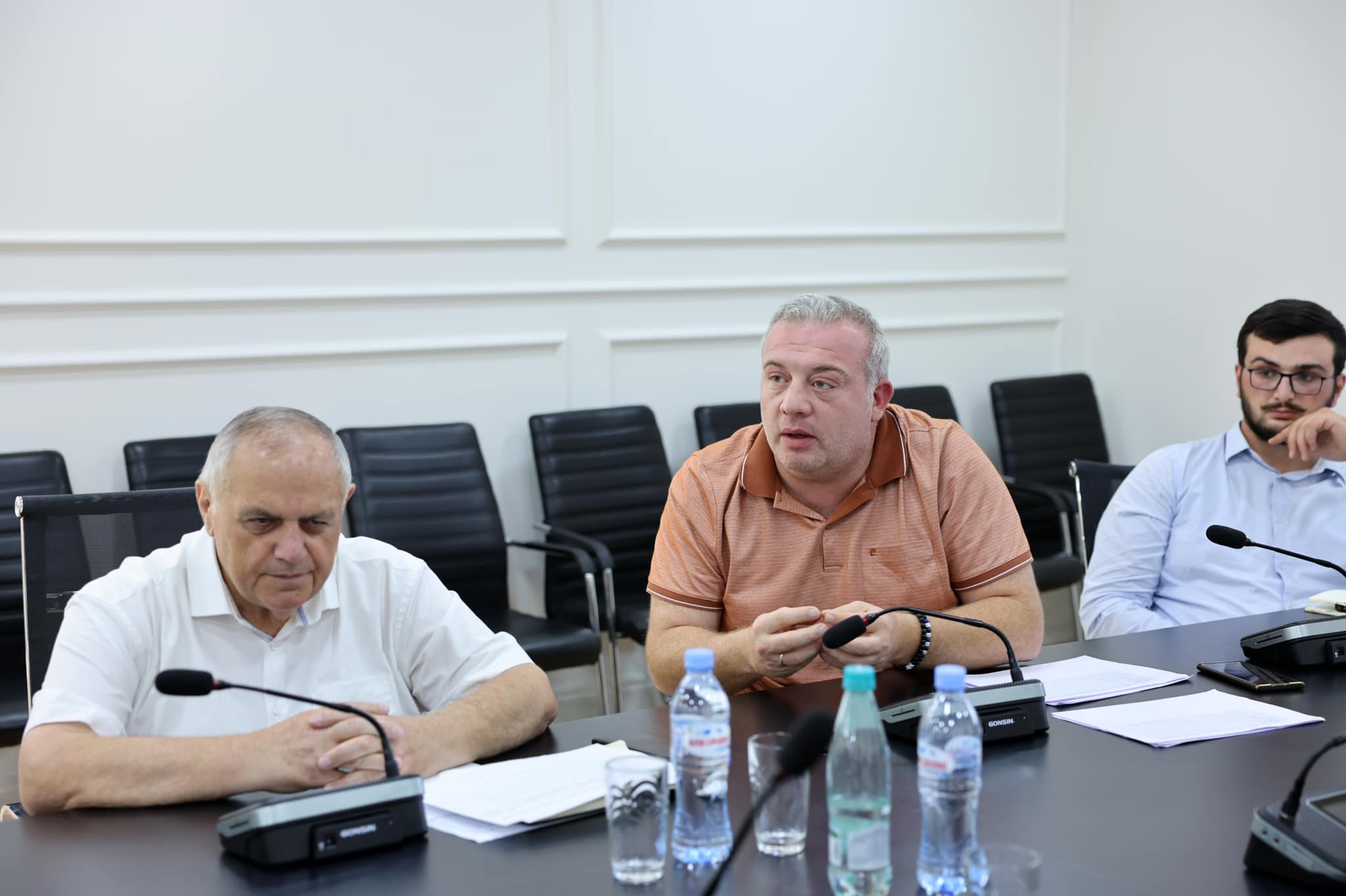 During the meeting with the representatives of industrial associations and members of the wheat crop coordination center, Mr. Tengiz Nasaridze addressed issues related to wheat harvesting, handling, storing, and selling.