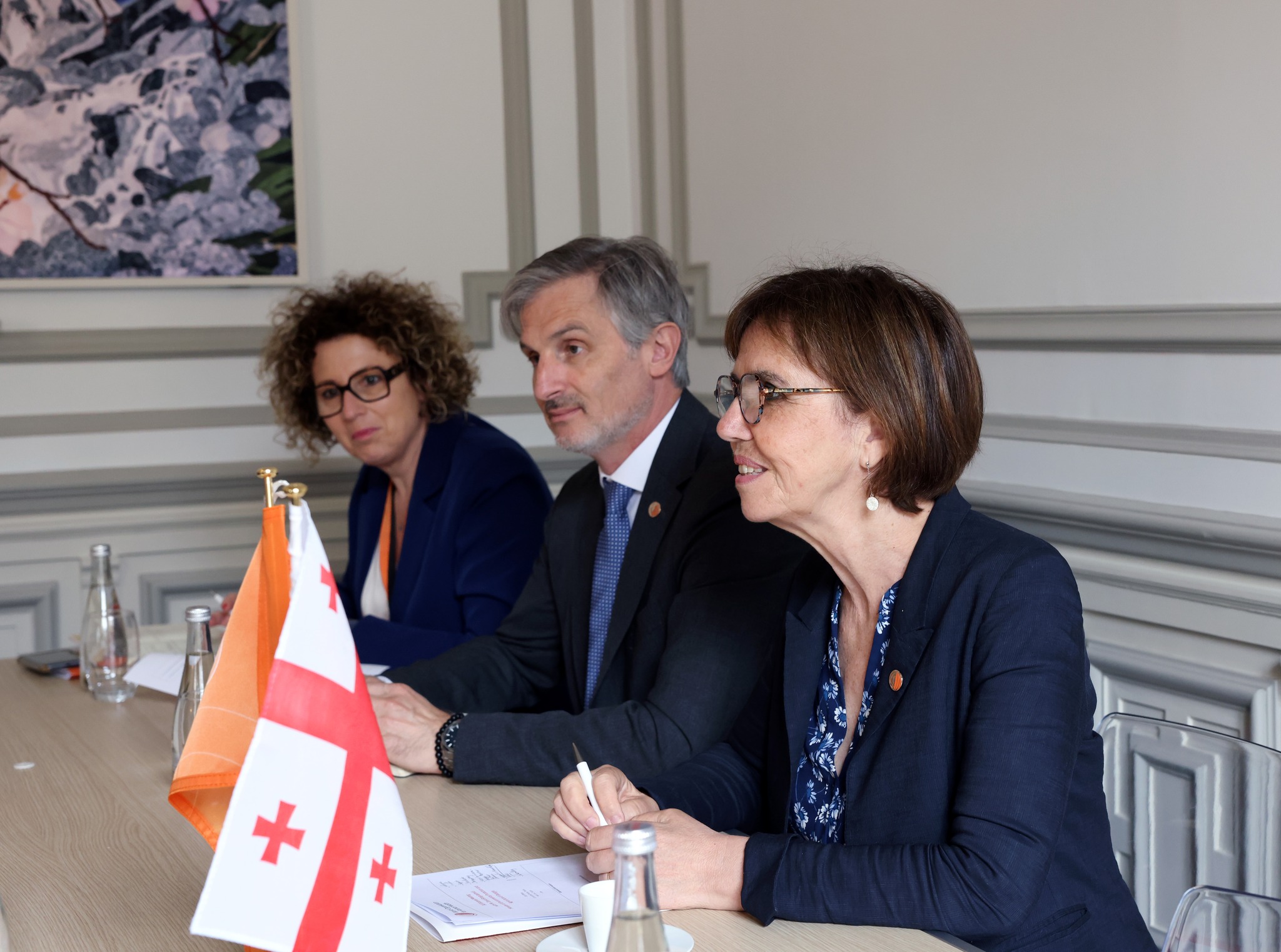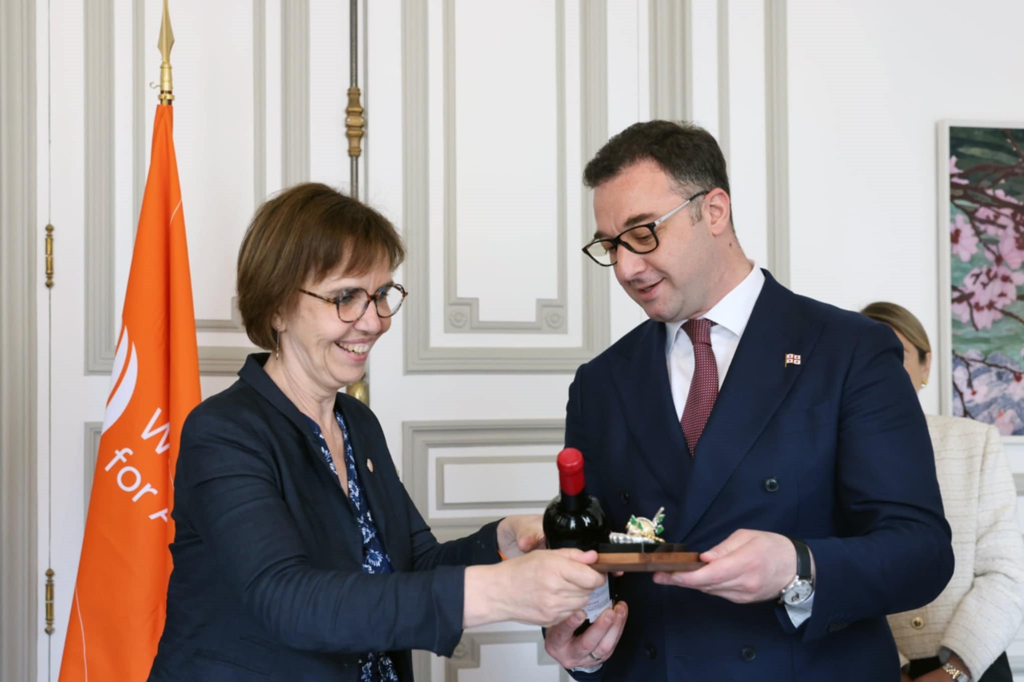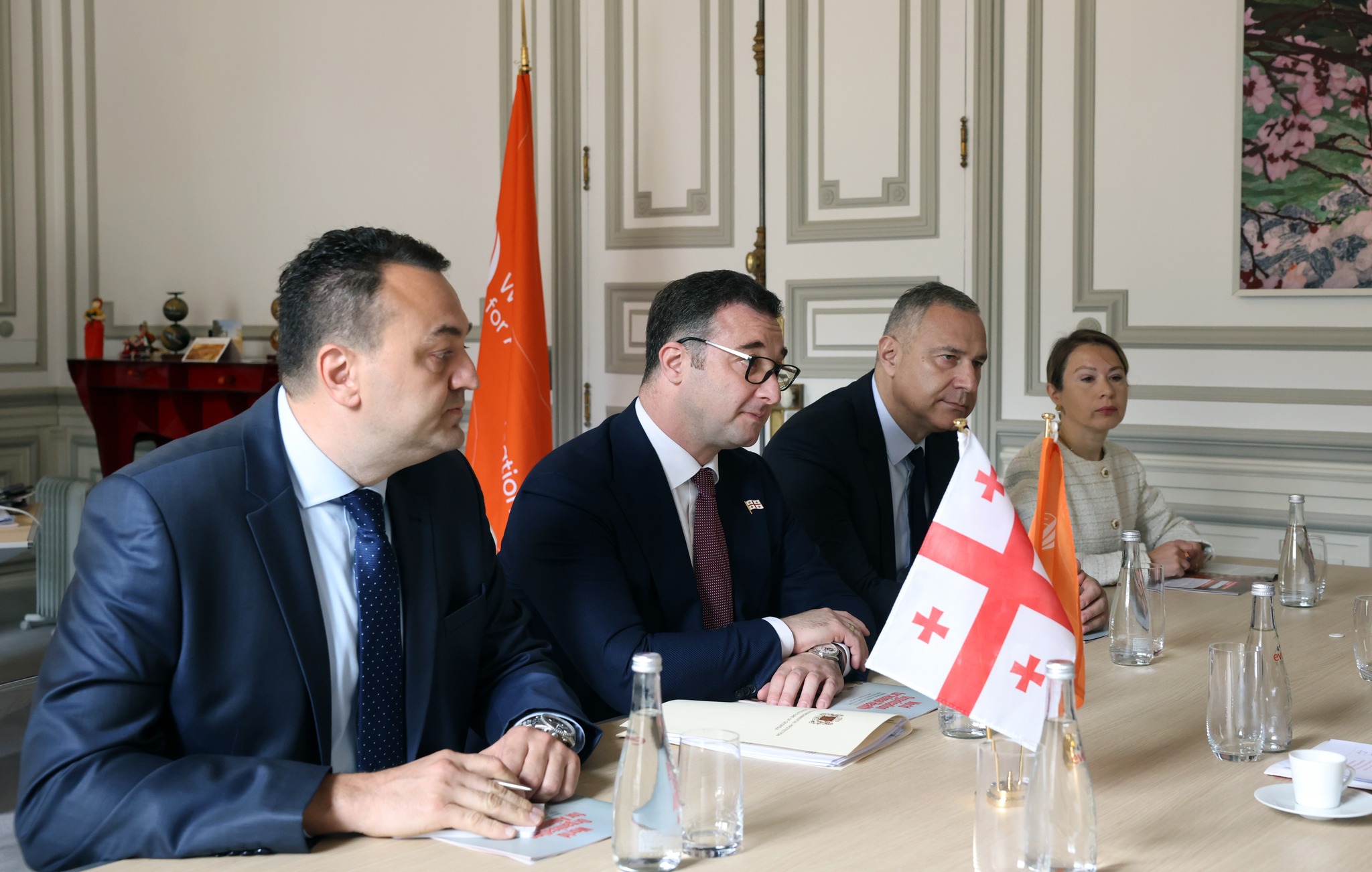 The Heads of the National Food Agency, Mr Vasil Basiladze and Mr Giorgi Iakobashvili, and Mrs Ekaterine Kokaia, the Acting Ambassador of Georgia to France, accompanied the Minister.