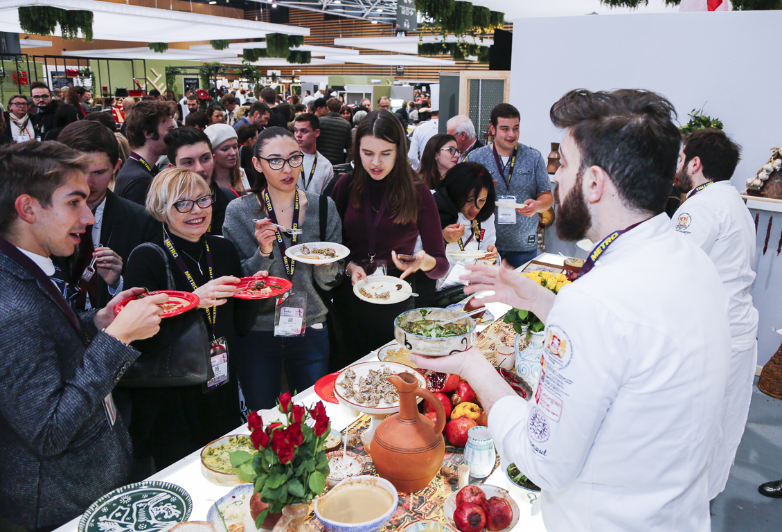 Mayor of Lyon, Gérard Collomb and President of Bocuse d'Or Gastronomic Championship, Jérôme Bocuse opened an exhibition, which hosted over 6,000 visitors. At the exhibition, eleven young, most promising Georgian chefs, led by the head chef, Levan Kobiashvili demonstrated a modern interpretation of traditional Georgian cuisine and authentic ingredients.