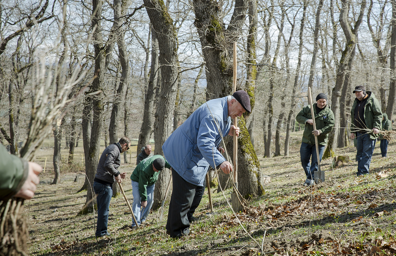 Minister of Environmental Protection and Agriculture, Levan Davitashvili together with the Governor of Shida Kartli region Giorgi Khojevanishvili planted oak and ash tree seedlings in the vicinity of the so-called "Baiantkhevi", Surami.