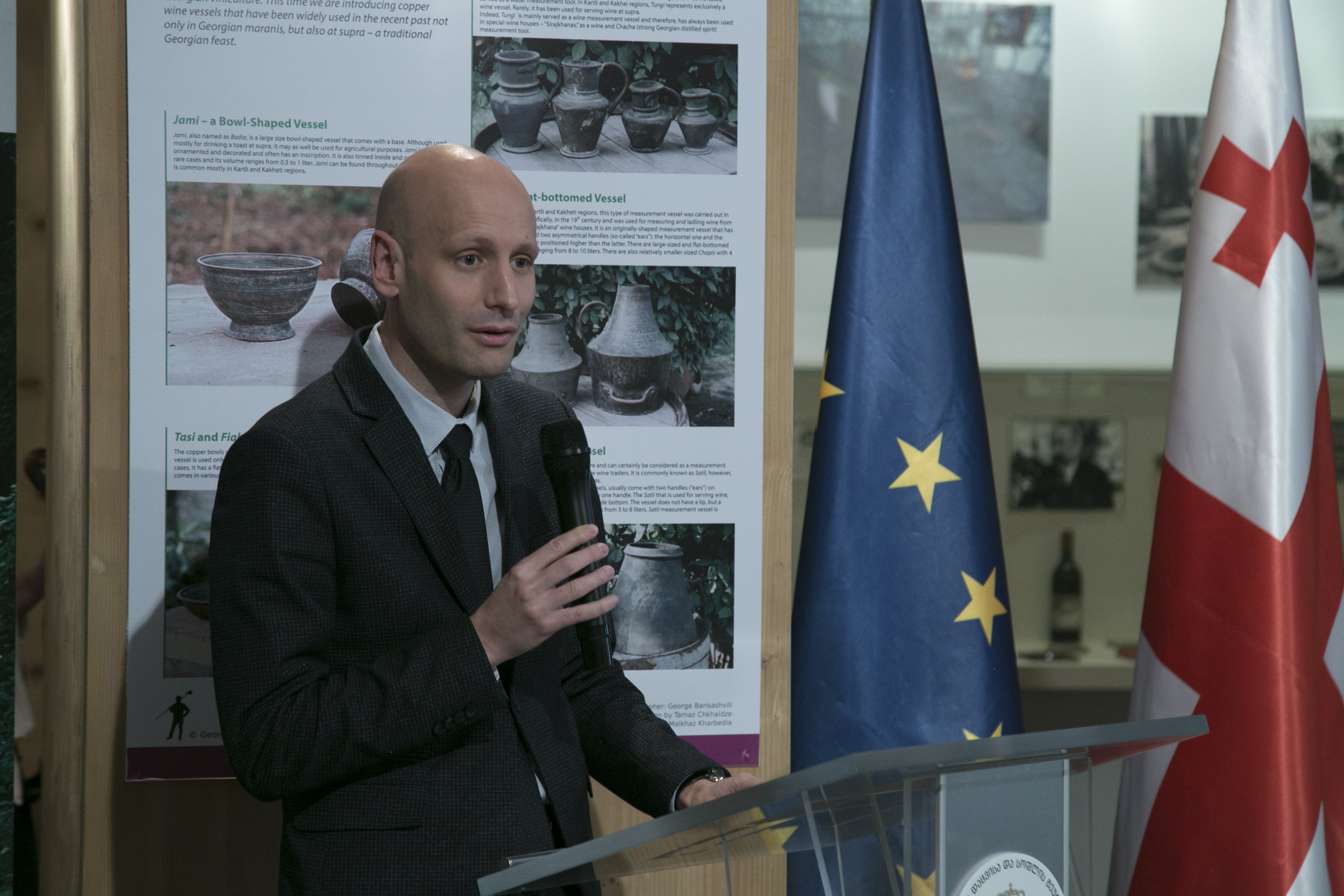 Alexandre Darras, Sector Coordinator on Connectivity, Energy, Environment & Climate Change at the Delegation of the European Union to Georgia, representatives of Spain - Ministry of Environment and Spatial Planning, CMAOT, Netherlands - Ministry of Infrastructure and Environment, Dutch Knowledge Center - Infomil, CENIA, Czech Environmental Information Agency)and representatives of relevant departments attended the event at the National Wine Agency.