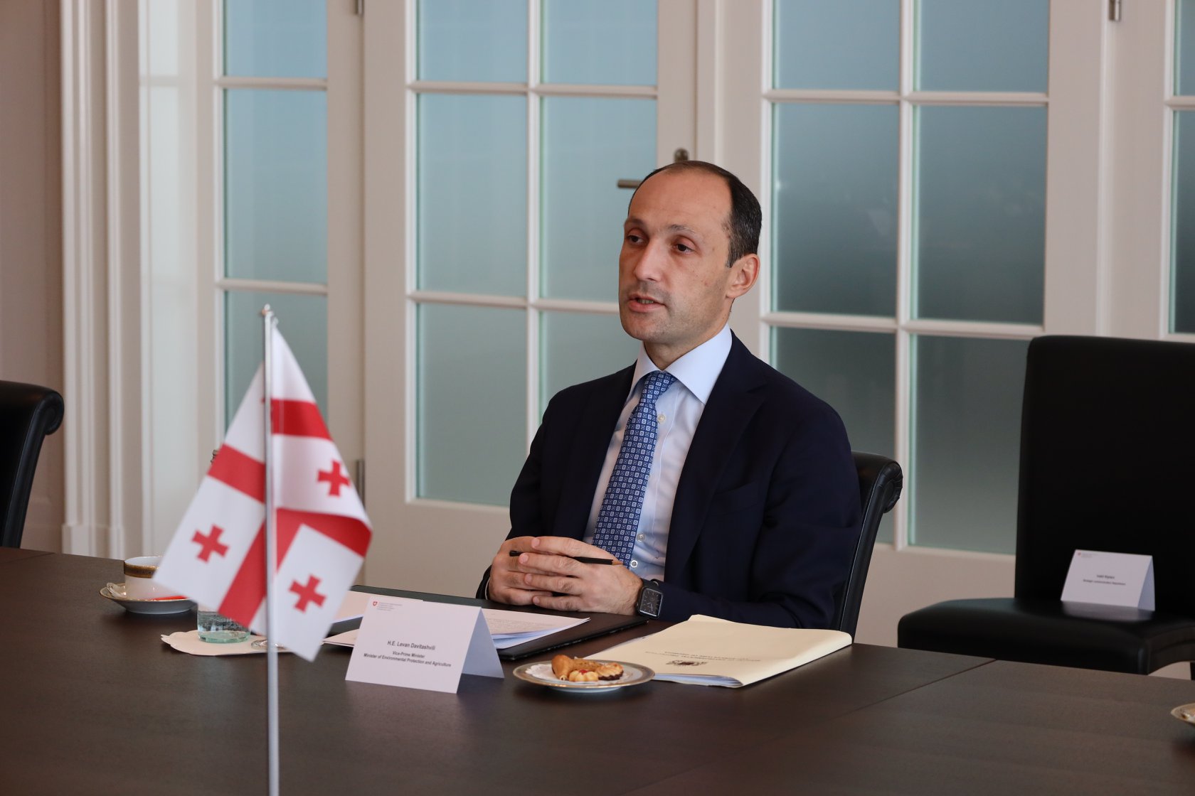 ქ. ბერნში, საგარეო საქმეთა სამინისტროში გამართულ შეხვედრას გარემოს დაცვისა და სოფლის მეურნეობის მინისტრის მოადგილე ნინო თანდილაშვილი და საქართველოს საგანგებო და სრულუფლებიანი ელჩი შვეიცარიის კონფედერაციასა და ლიხტენშტეინის სამთავროში რევაზ ლომინაძე ესწრებოდნენ.