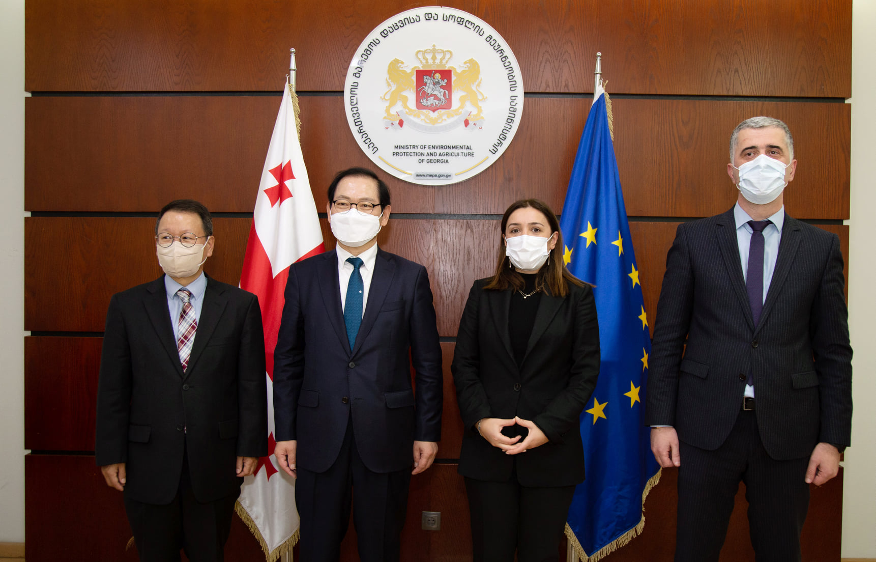 საქართველოს გარემოს დაცვისა და სოფლის მეურნეობის სამინისტროში გამართულ შეხვედრას სამინისტროს შესაბამისი სამსახურების და კორეის რესპუბლიკის სახელმწიფო უწყებების წარმომადგენლები ესწრებოდნენ.