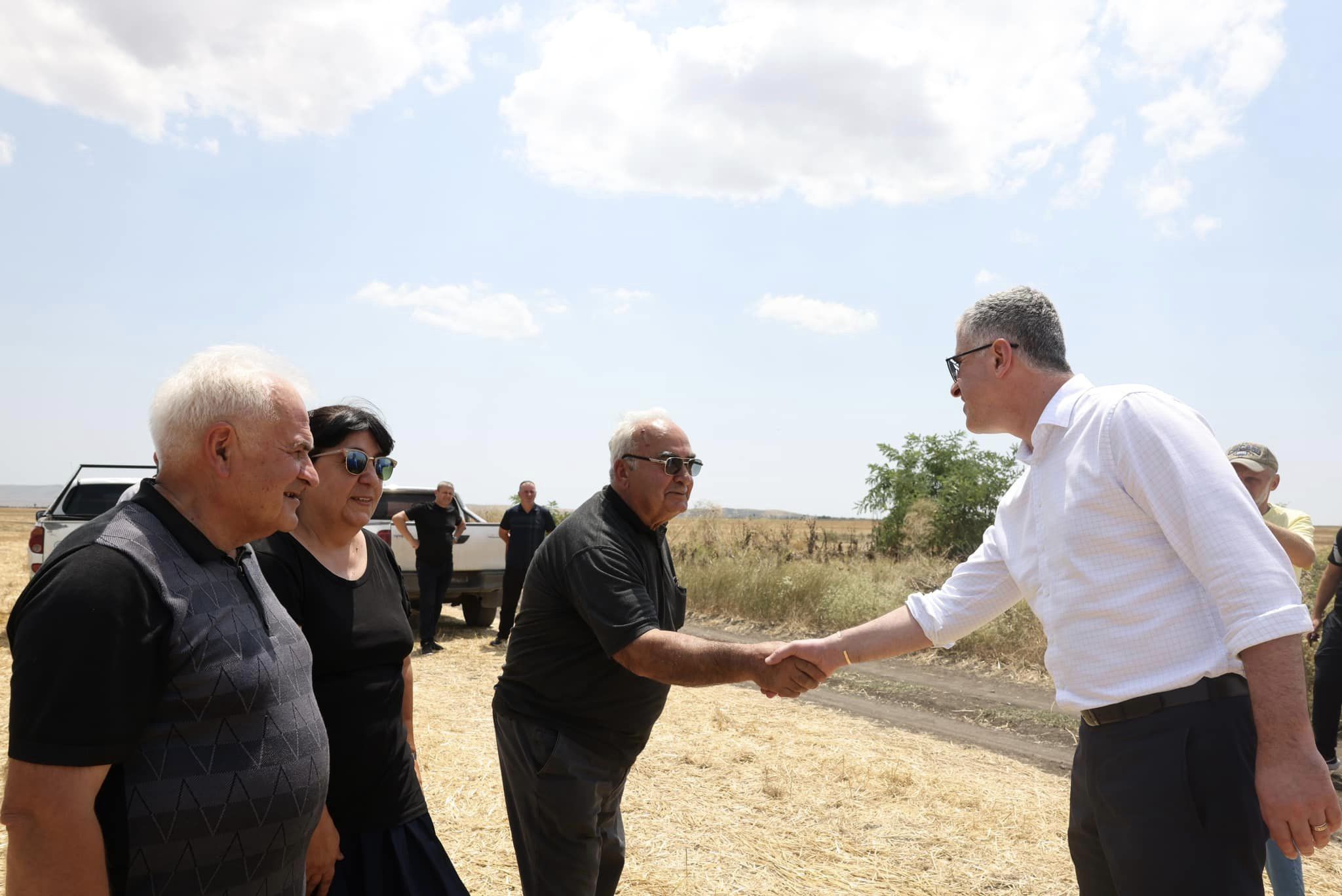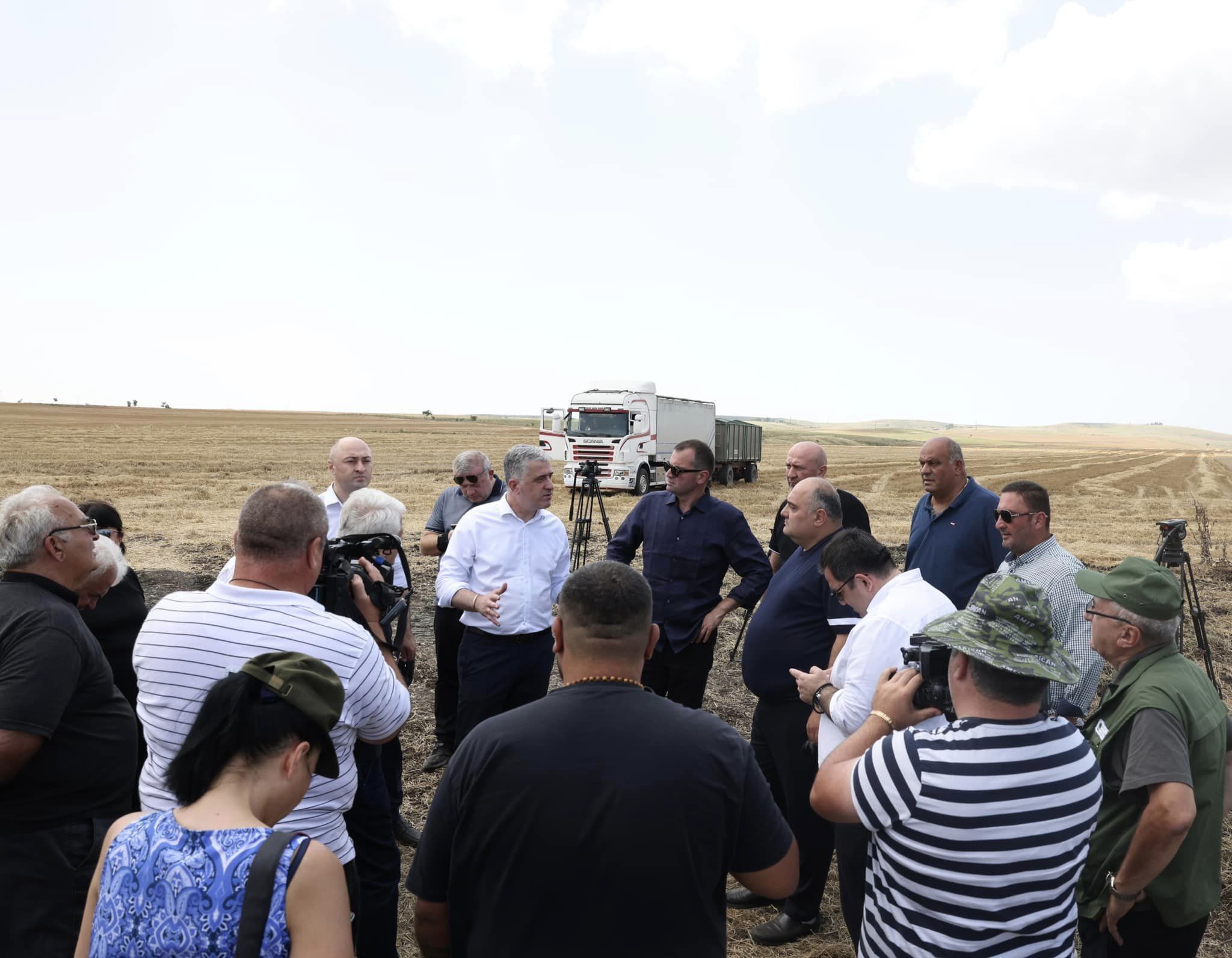 გარემოს დაცვისა და სოფლის მეურნეობის მინისტრი ოთარ შამუგია, კახეთის სახელმწიფო რწმუნებული გიორგი ალადაშვილი და დედოფლისწყაროს მუნიციპალიტეტის მერი ნიკოლოზ ჯანიაშვილი ხორბლის მოსავლის აღების პროცესს გაეცნენ და ადგილობრივ ფერმერებს შეხვდნენ.