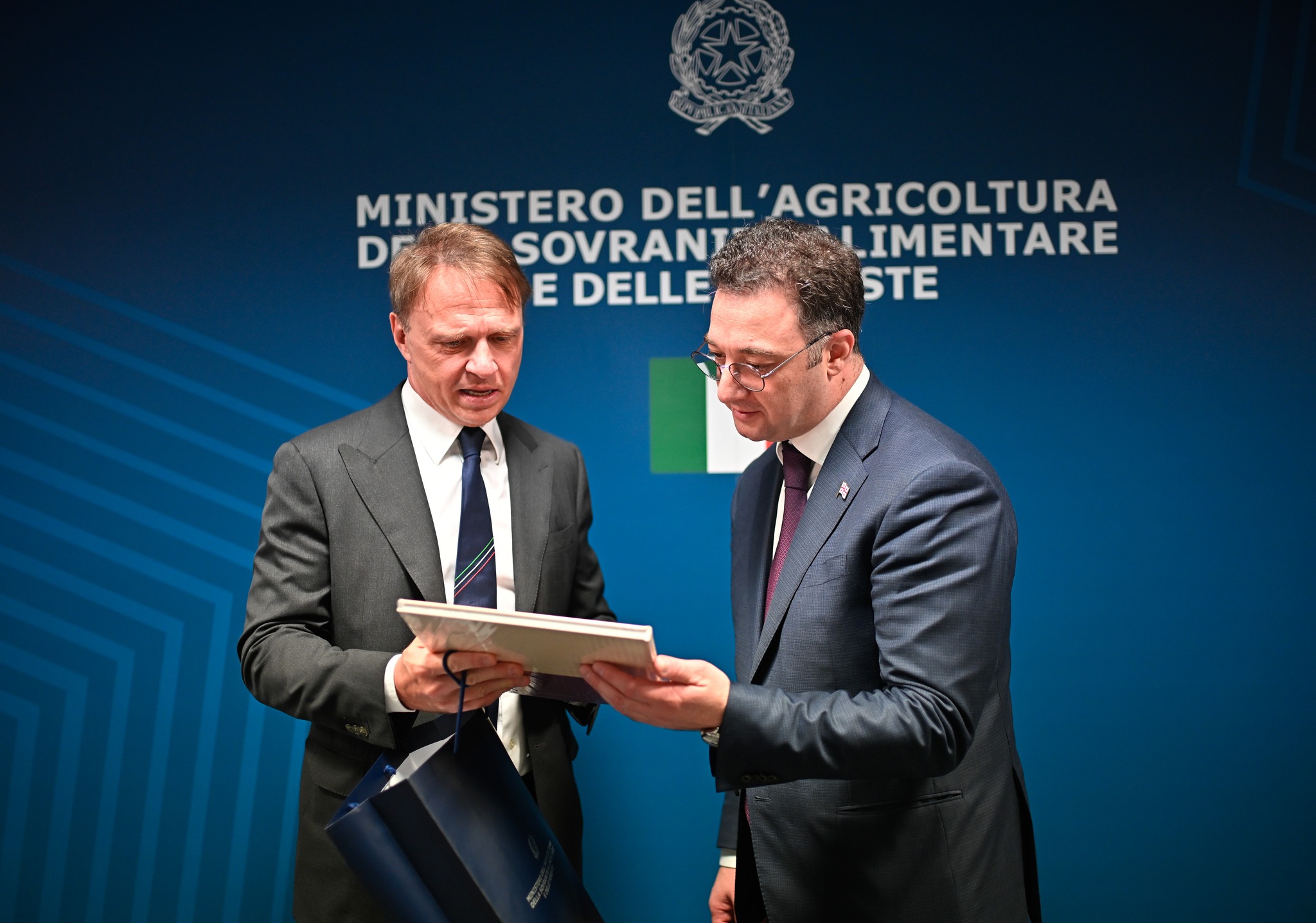იტალიის რესპუბლიკის სოფლის მეურნეობის, სურსათის სუვერენიტეტისა და სატყეო მეურნეობის მინისტრთან გამართულ შეხვედრას საქართველოს საგანგებო და სრულუფლებიანი ელჩი იტალიის რესპუბლიკაში თამარ ლილუაშვილი, ღვინის ეროვნული სააგენტოს თავმჯდომარე ლევან მეხუზლა და გარემოს დაცვისა და სოფლის მეურნეობის სამინისტროს საერთაშორისო ურთიერთობების და ევროინტეგრაციის დეპარტამენტის ხელმძღვანელი დავით ჩიტაიშვილი ესწრებოდნენ.