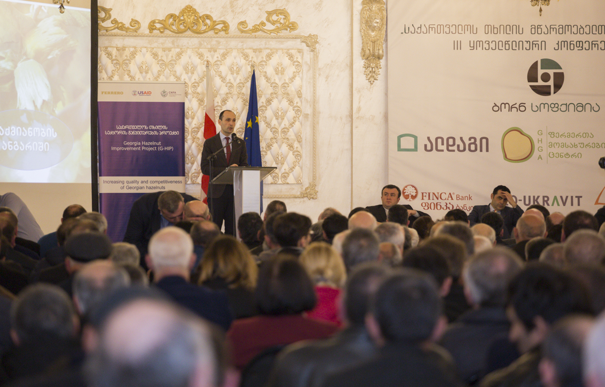 გარემოს დაცვისა და სოფლის მეურნეობის მინისტრი ლევან დავითაშვილი,  ზუგდიდში, საქართველოს თხილის მწარმოებელთა ასოციაციის (GHGA-ის) მე-3  კონფერენციას დაესწრო. კონფერენციაზე  თხილის სექტორში  არსებულ გამოწვევებსა  და მათი გადაჭრის გზებზე იმსჯელეს.  მინისტრმა  ხაზი გაუსვა მეთხილეობის დარგის განვითარების მნიშვნელობას, დეტალურად ისაუბრა   სახელმწიფოს ხედვასა და    თხილის კულტურის  დაცვის მიზნით დაგეგმილ  ხელშემწყობ ღონისძიებებზე.