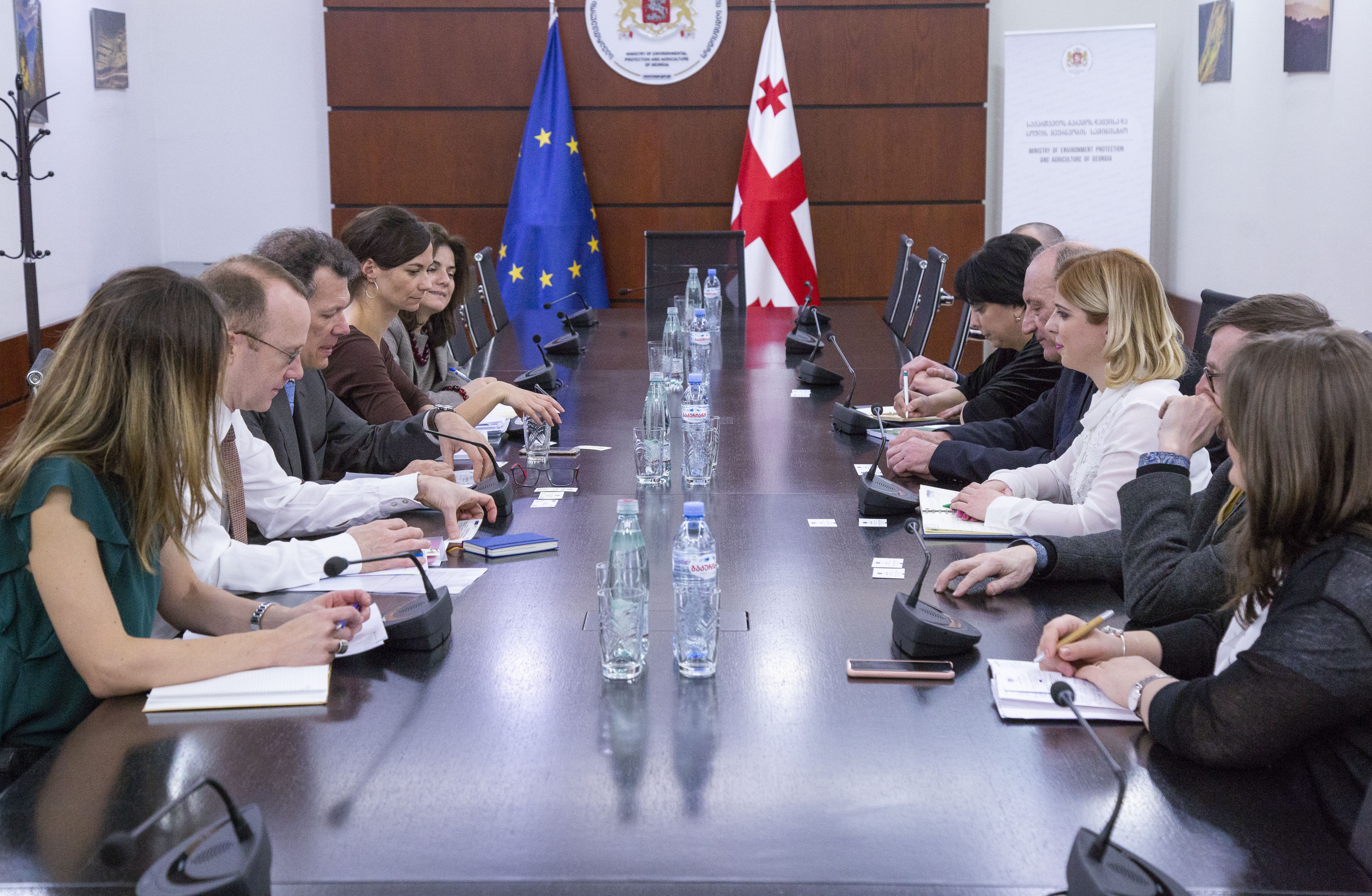 გარემოს დაცვისა და სოფლის მეურნეობის მინისტრის მოადგილე ხატია წილოსანი ევროკომისიის წარმომადგენლებს მეთიუ ბუსკეტსა და მიქაელა ჰაუფს შეხვდა