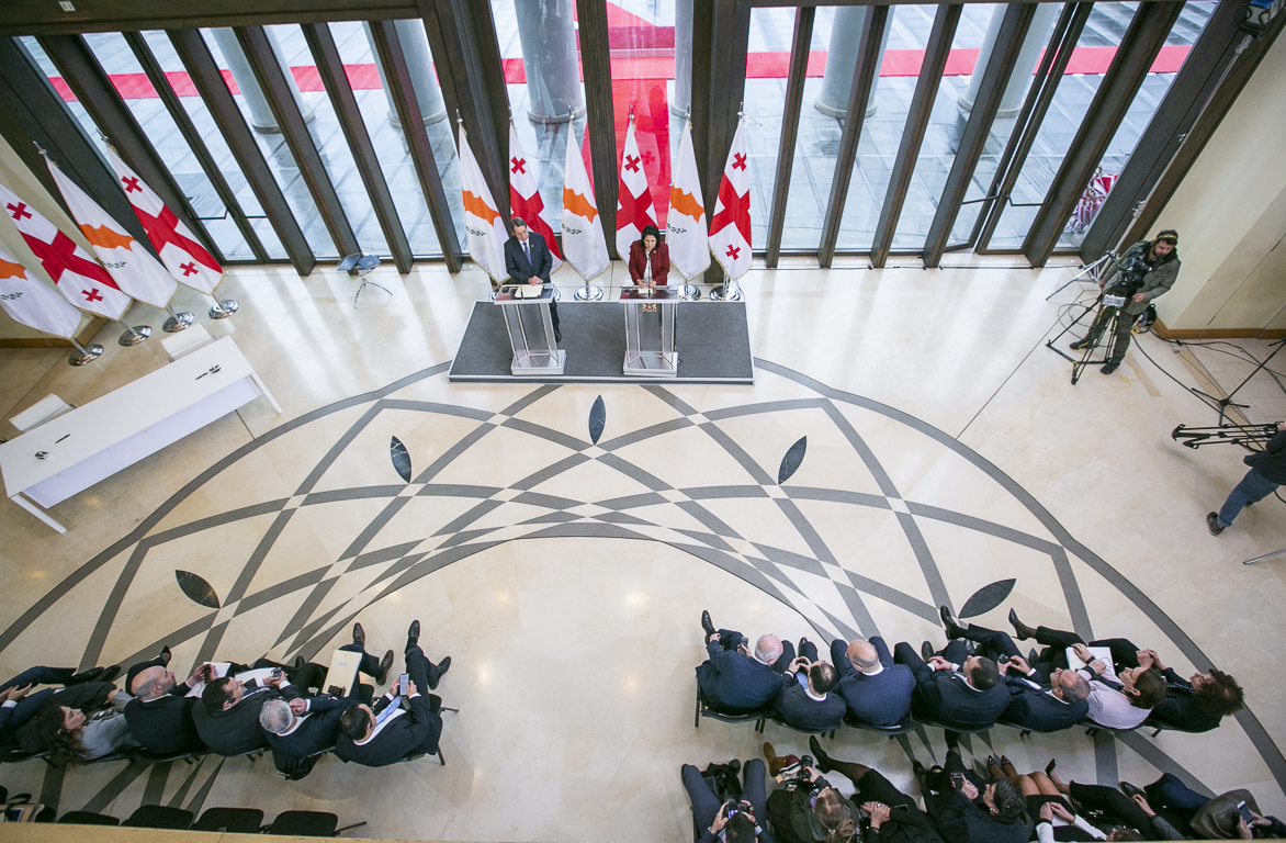 ორმხრივი დოკუმენტის ხელმოწერის ცერემონია საქართველოს სახელმწიფო ცერემონიების სასახლეში გაიმართა.