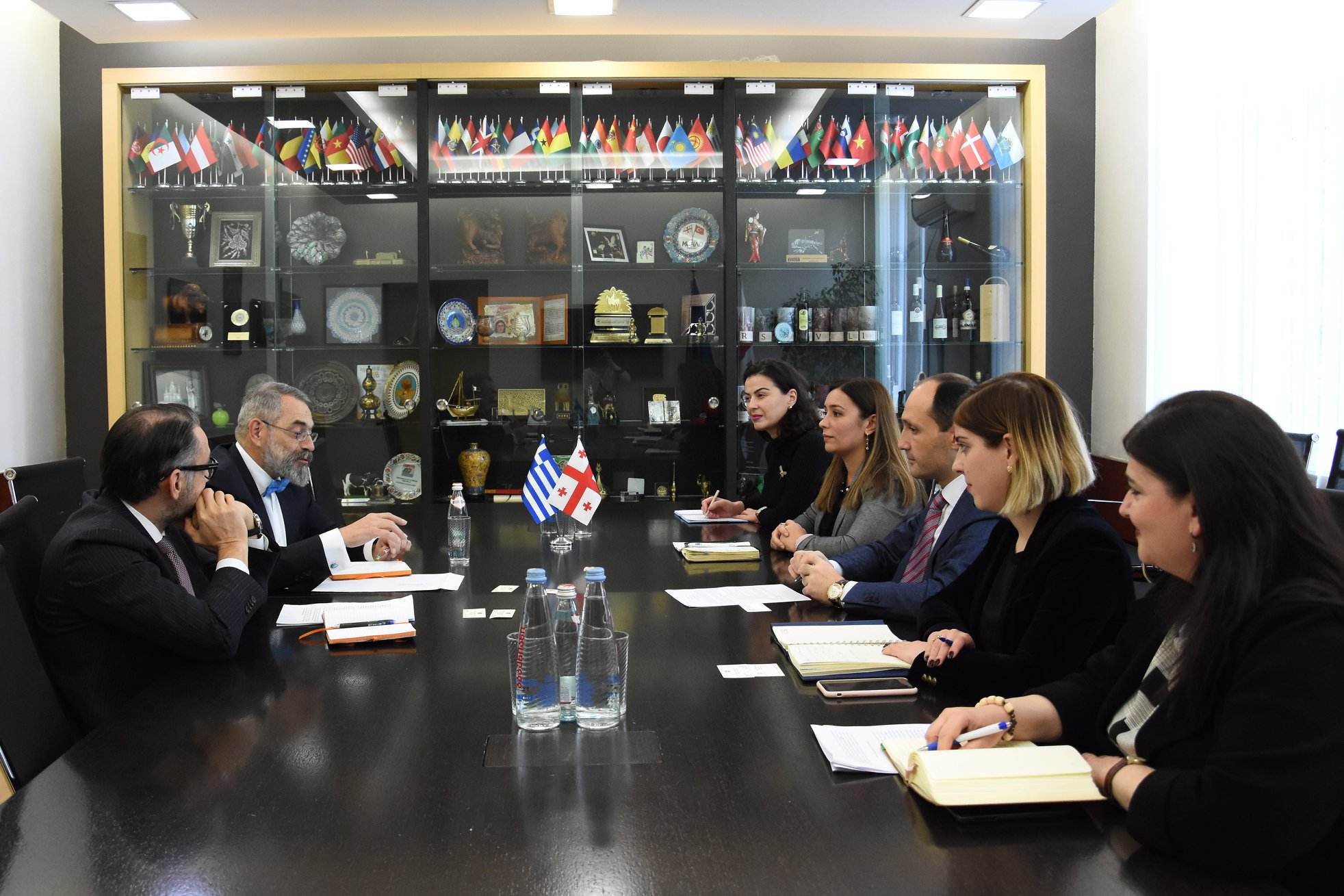 გარემოს დაცვისა და სოფლის მეურნეობის მინისტრი ლევან დავითაშვილი საბერძნეთის რესპუბლიკის ელჩს საქართველოში დიმიტრის კარაბალის შეხვდა