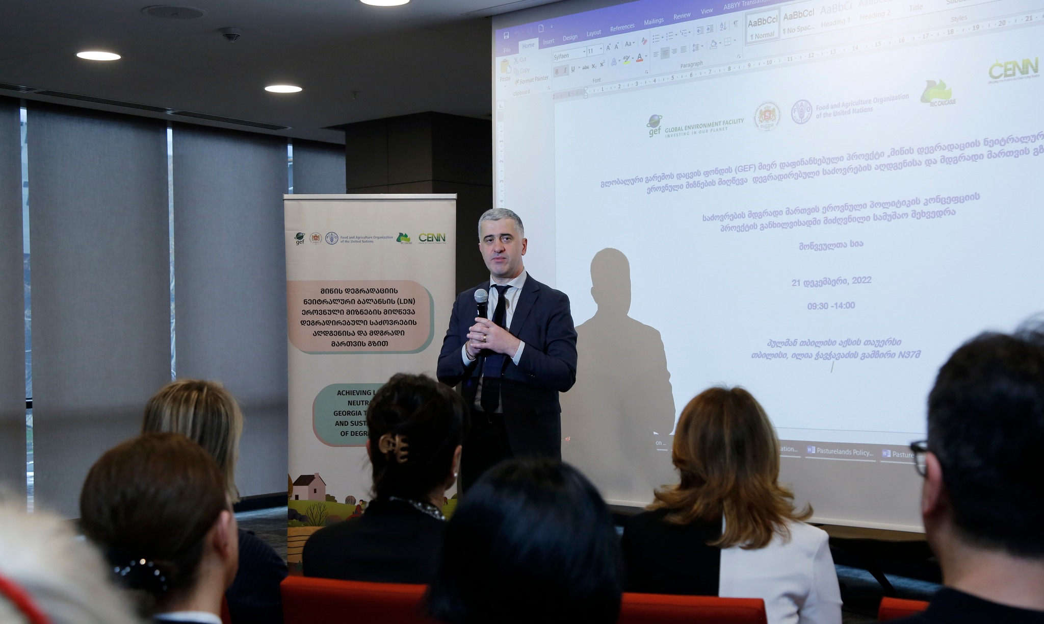 გარემოს დაცვისა და სოფლის მეურნეობის მინისტრი ოთარ შამუგია გლობალური გარემოს დაცვის ფონდის (GEF) მიერ დაფინანსებული პროექტის „მიწის დეგრადაციის ნეიტრალური ბალანსის (LDN) ეროვნული მიზნების მიღწევა დეგრადირებული საძოვრების აღდგენისა და მდგრადი მართვის გზით“ ფარგლებში გამართულ სამუშაო შეხვედრას დაესწრო. შეხვედრაზე საძოვრების მდგრადი მართვის ეროვნული პოლიტიკის კონცეფციის პროექტი განიხილეს.