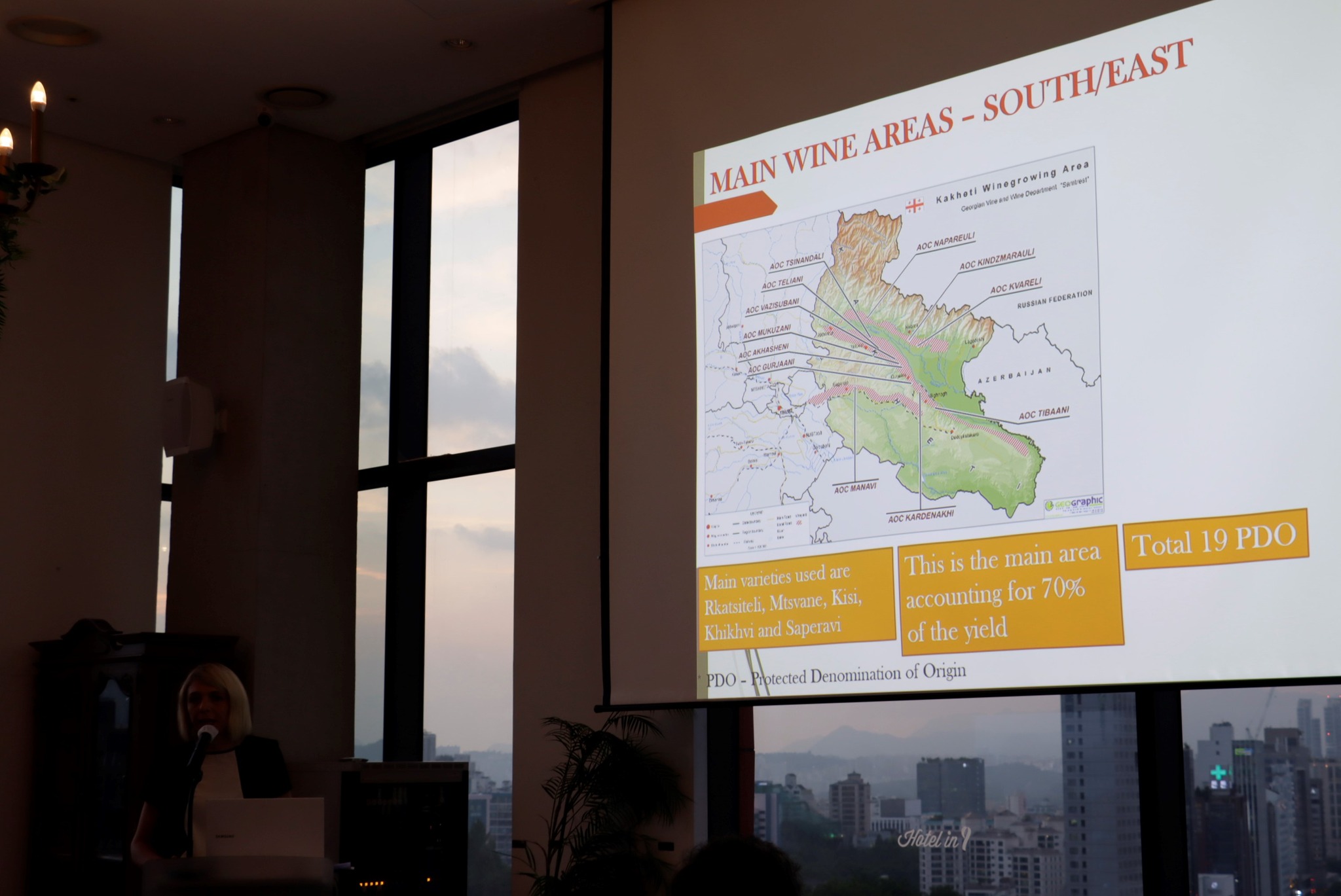 ქართული ღვინის კულტურისა და თანამედროვე ინდუსტრიის შესახებ პრეზენტაცია ასოციაციის „ქართული ღვინო“ კომუნიკაციებისა და ბიზნესის განვითარების მენეჯერმა ტატა ჯაიანმა წარმოადგინა.