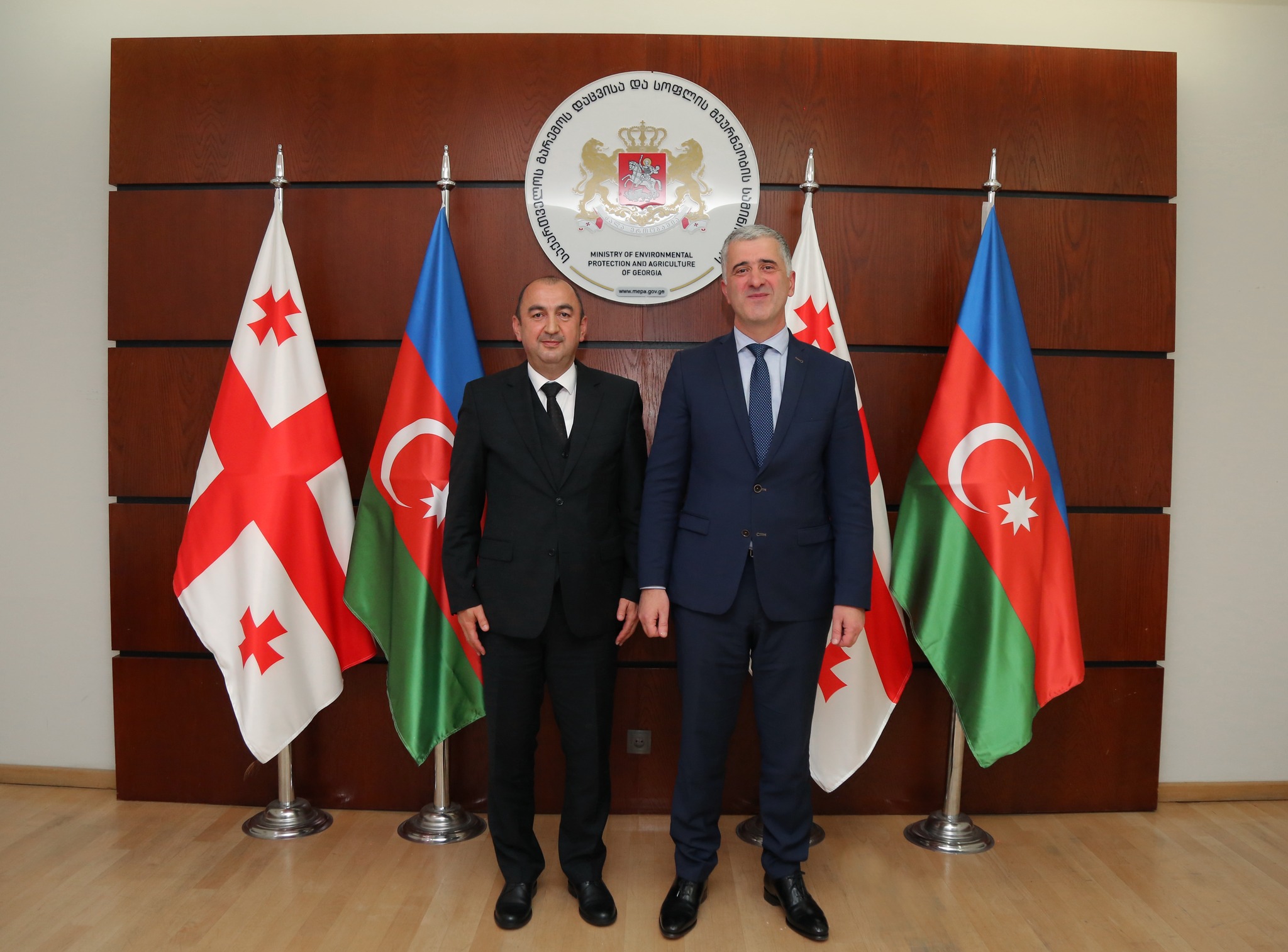 აზერბაიჯანის რესპუბლიკის ეკოლოგიისა და ბუნებრივი რესურსების სამინისტროს დელეგაციასთან შეხვედრას გარემოს დაცვისა და სოფლის მეურნეობის მინისტრის მოადგილეები იური ნოზაძე და კახა კაკაბაძე, ასევე, სამინისტროს შესაბამისი სამსახურების წარმომადგენლები ესწრებოდნენ.
