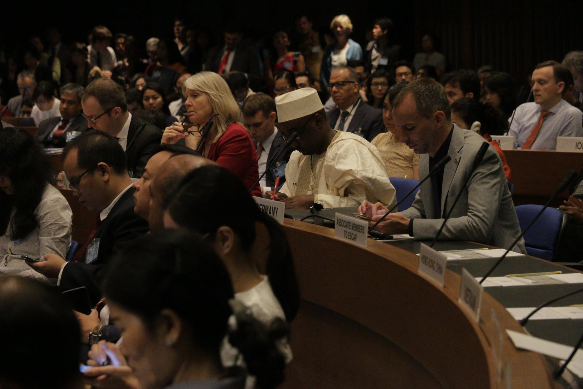 ESCAP-ის შტაბბინაში სპეციალურად მოწყობილ პარტნიორების პავილიონში, საქართველოს სტენდზე, საქართველოს საგარეო უწყებამ განხორციელებული წარმატებული პროექტების შესახებ პრეზენტაცია წარმოადგინა; გაიმართა ქართული ღვინისა და ტკბილეულის დეგუსტაცია.