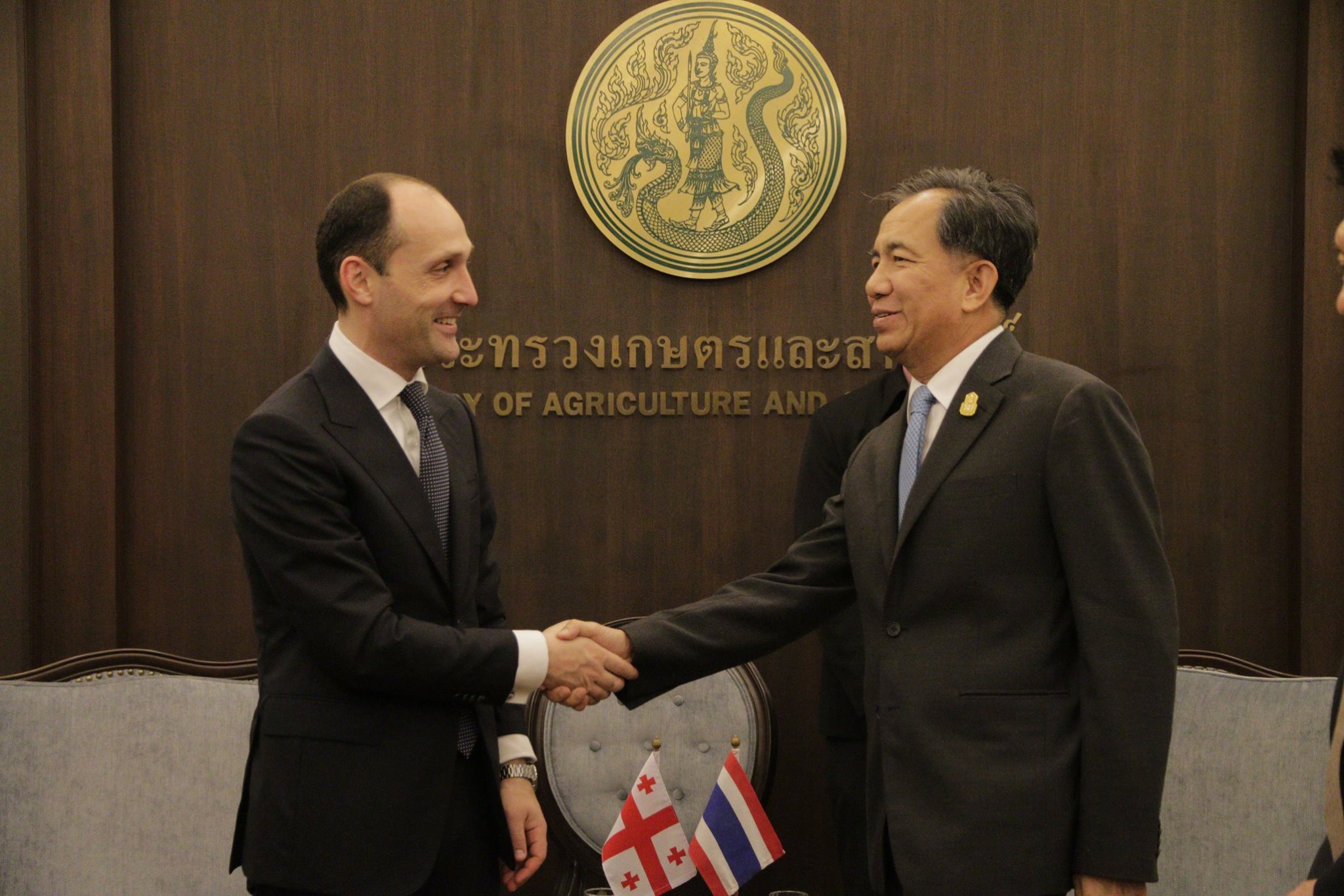 საქართველოს გარემოს დაცვისა და სოფლის მეურნეობის მინისტრი ლევან დავითაშვილი ტაილანდის სამეფოს დედაქალაქ ბანგკოკში ვიზიტის ფარგლებში ტაილანდის სოფლის მეურნეობისა და კოოპერატივების მინისტრს, გრისადა ბუნრახს შეხვდა. ტაილანდის სოფლის მეურნეობისა და კოოპერატივების სამინისტროში გამართულ შეხვედრაზე მხარეებმა ორ ქვეყანას შორის თანამშრომლობის არსებულ პოტენციალზე ისაუბრეს.შეხვედრაზე ლევან დავითაშვილმა საქართველოში განხორციელებულ რეფორმებსა და ეკონომიკურ სფეროში მიღწევებზე ისაუბრა და ხაზგასმით აღნიშნა, რომ ტაილანდის სამეფოსთან, როგორც რეგიონის წამყვან ქვეყანასთან, ორმხრივი ეკონომიკური ურთიერთობების გაღრმავება ერთ-ერთ პრიორიტეტს წარმოადგენს.