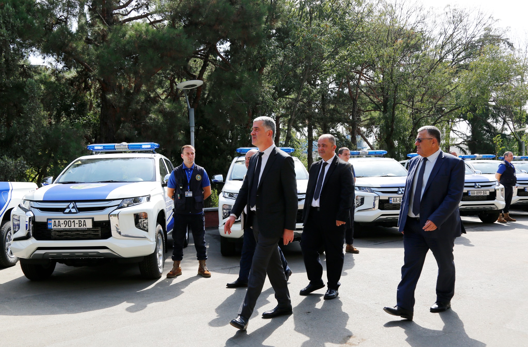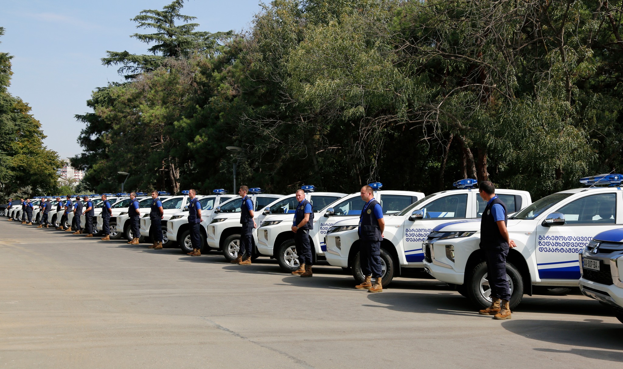 გარემოსდაცვითი ზედამხედველობის დეპარტამენტის ახალი ავტომობილები გარემოს დაცვისა და სოფლის მეურნეობის მინისტრმა, ოთარ შამუგიამ, მინისტრის მოადგილე კახა კაკაბაძემ და გარემოსდაცვითი ზედამხედველობის დეპარტამენტის უფროსმა, ლევან ჯღარკავამ დაათვალიერეს. პიკაპის ტიპის 22 ახალი ავტომობილი დედაქალაქის და რეგიონულ სამმართველოებს გადაეცემათ.