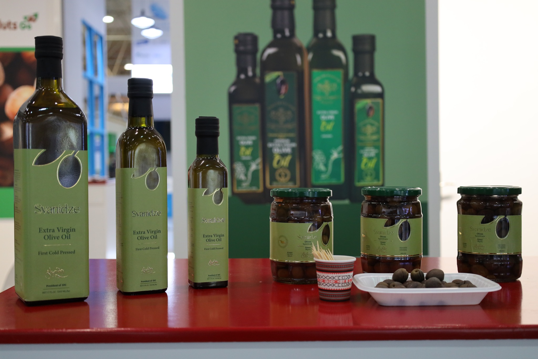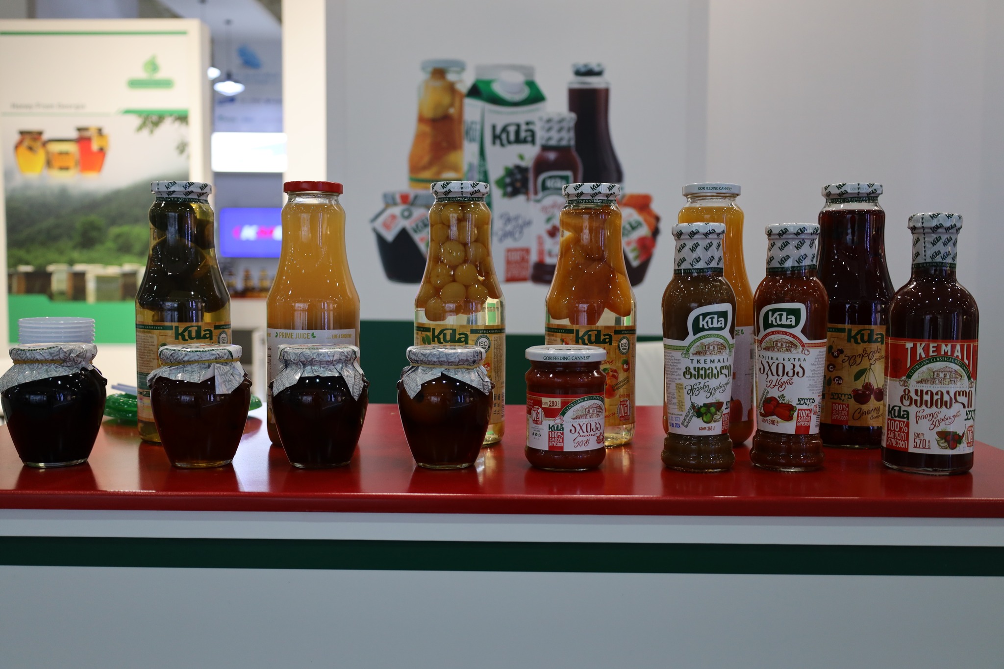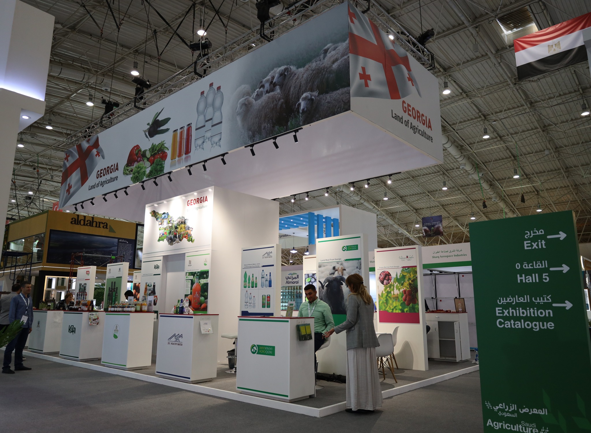 გამოფენის Saudi Agriculture International Trade Exhibition სტუმრებს, საშუალება აქვთ საქართველოს სტენდზე გაეცნონ სასოფლო-სამეურნეო პროდუქციის მწარმოებელი 10 ქართული კომპანიის - შპს „nuts.ge“, კოოპერატივი „რაჭის ნატურალური პროდუქტები“, შპს „ჯორჯიას ნეიჩერალს“, შპს „როიალ ბერი“, შპს „წყალი მარგებელი“, შპს „დომეინ სვანიძე“, შპს „ჰერბია“, შპს „ხონის პლანტაციები“, შპს „კულა“, შპს „აგროქიზიყი“ პროდუქციას. სტენდზე წარმოდგენილია ქართული კაკალი, თხილი, თაფლი, მოცვი, ჟოლო, ტყემალი, საწებელი, წყალი, მინერალური წყალი, ხილის ნატურალური წვენი, სუნელი, ცხვრის ხორცი და ზეითუნის ზეთი.