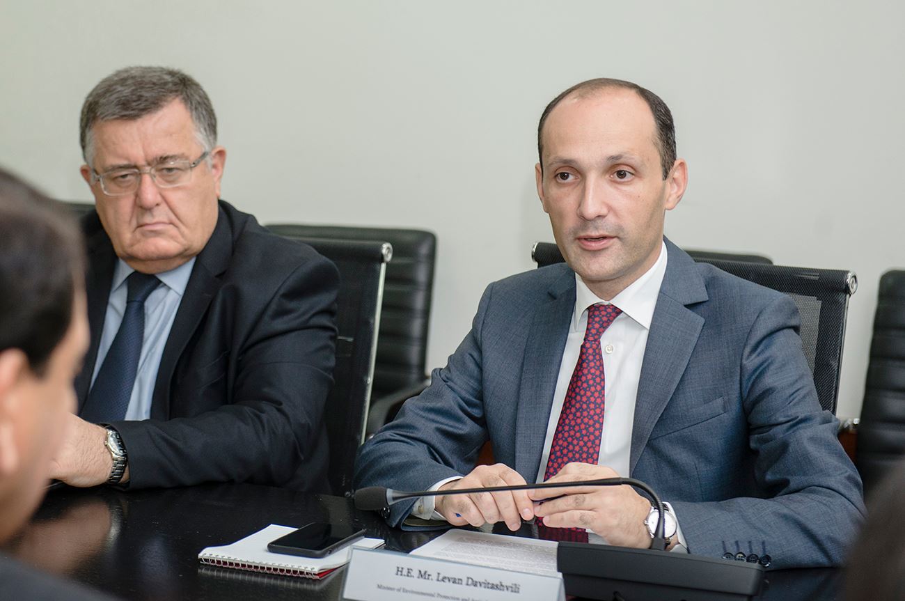 მინისტრმა დელეგაციის წევრებს გარემოსდაცვითი სახელმწიფო პოლიტიკის ძირითადი მიმართულებები, მათ შორის, მწვანე ეკონომიკის განვითარების კონცეფცია გააცნო.