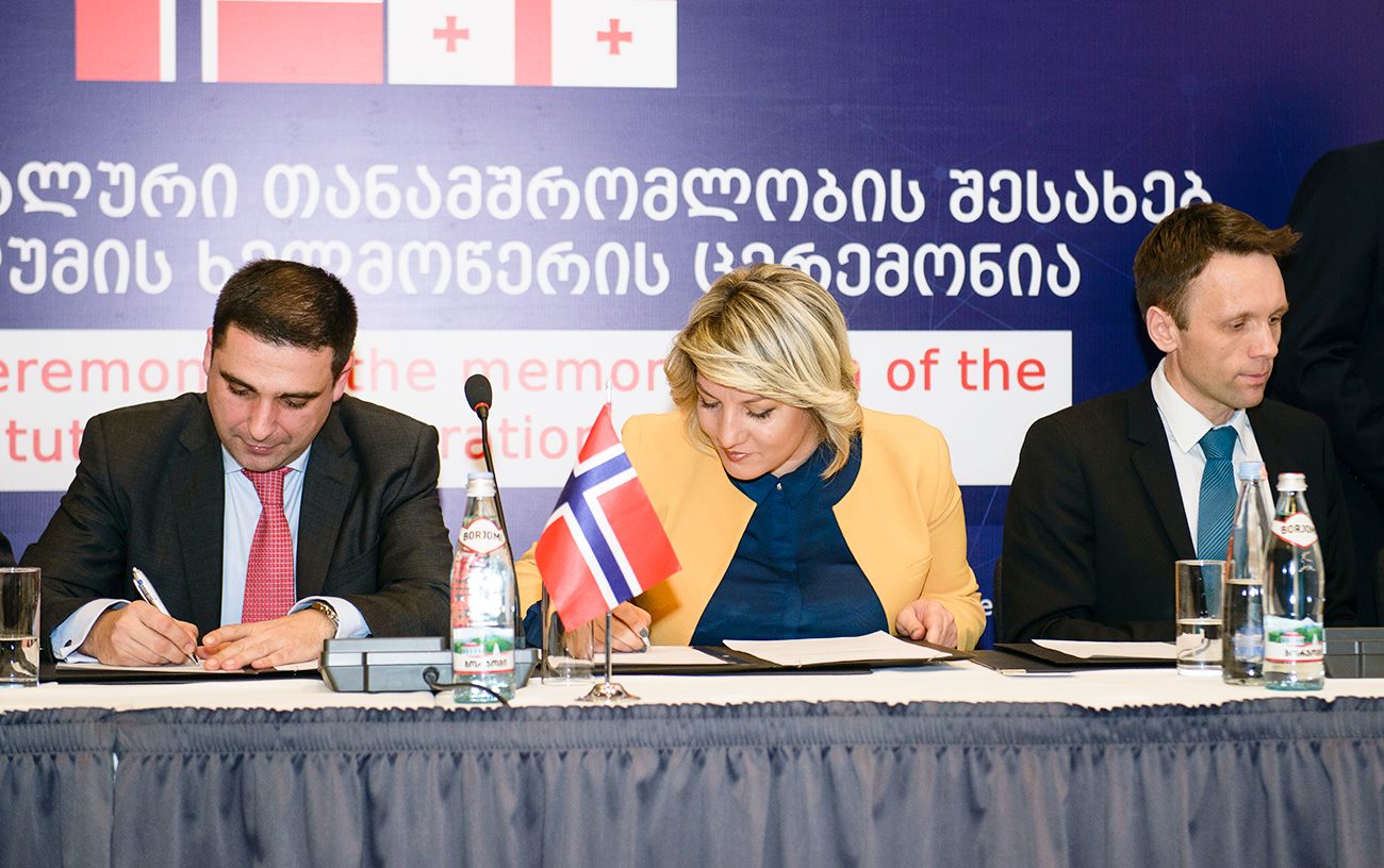 სასტუმრო „რედისონ ბლუ ივერია“-ში ნორვეგიის წყლის რესურსებისა და ენერგეტიკის დირექტორატს (NVE), გარემოს დაცვისა და სოფლის მეურნეობის სამინისტროს, ეკონომიკისა და მდგრადი განვითარების სამინისტროს, გარემოს ეროვნული სააგენტოს, სახელმწიფო ელექტროსისტემის, ტექნიკურ უნივერსიტეტს შორის ინსტიტუციონალური თანამშრომლობის შესახებ მემორანდუმი გაფორმდა.მემორანდუმს გარემოს დაცვისა და სოფლის მეურნეობის მინისტრის მოადგილემ ნინო თანდილაშვილმა, ეკონომიკისა და მდგრადი განვითარების მინისტრის მოადგილემ გიორგი ჩიქოვანმა და გარემოს ეროვნული სააგენტოს უფროსმა თამარ ბაგრატიამ მოაწერეს ხელი.