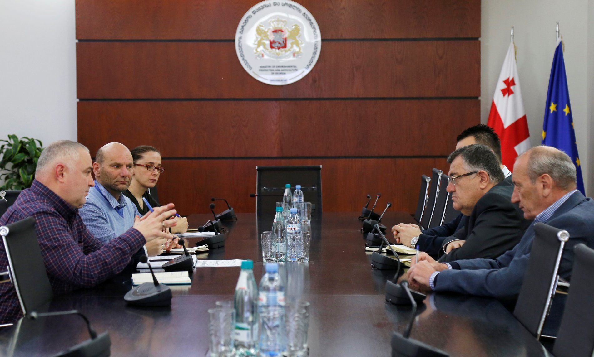 სამინისტროში გამართულ შეხვედრას სურსათის ეროვნული სააგენტოს უფროსი, ზურაბ ჩეკურაშვილი, სააგენტოს უფროსის მოადგილე ვასილ ბასილაძე, FAO-ს პროექტების მენეჯერი დრაგან ანგელოვსკი და ცხოველთა იდენტიფიკაცია-რეგისტრაციის ეროვნული სისტემის (NAITS) ხელმძღვანელი მიხეილ სოხაძე ესწრებოდნენ.