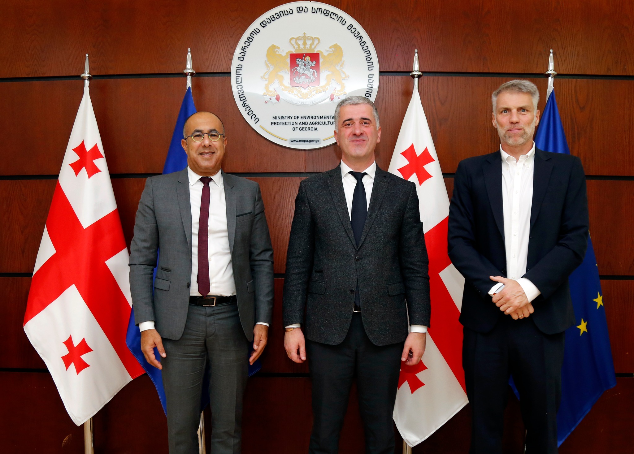 გარემოს დაცვისა და სოფლის მეურნეობის სამინისტროში გამართულ შეხვედრას მსოფლიო ბანკის რეგიონული დირექტორი სამხრეთ კავკასიაში სებასტიან მოლინეუსი, მინისტრის პირველი მოადგილე გიორგი ხანიშვილი და სამინისტროს შესაბამისი სამსახურების და უწყების ხელმძღვანელი პირები ესწრებოდნენ.