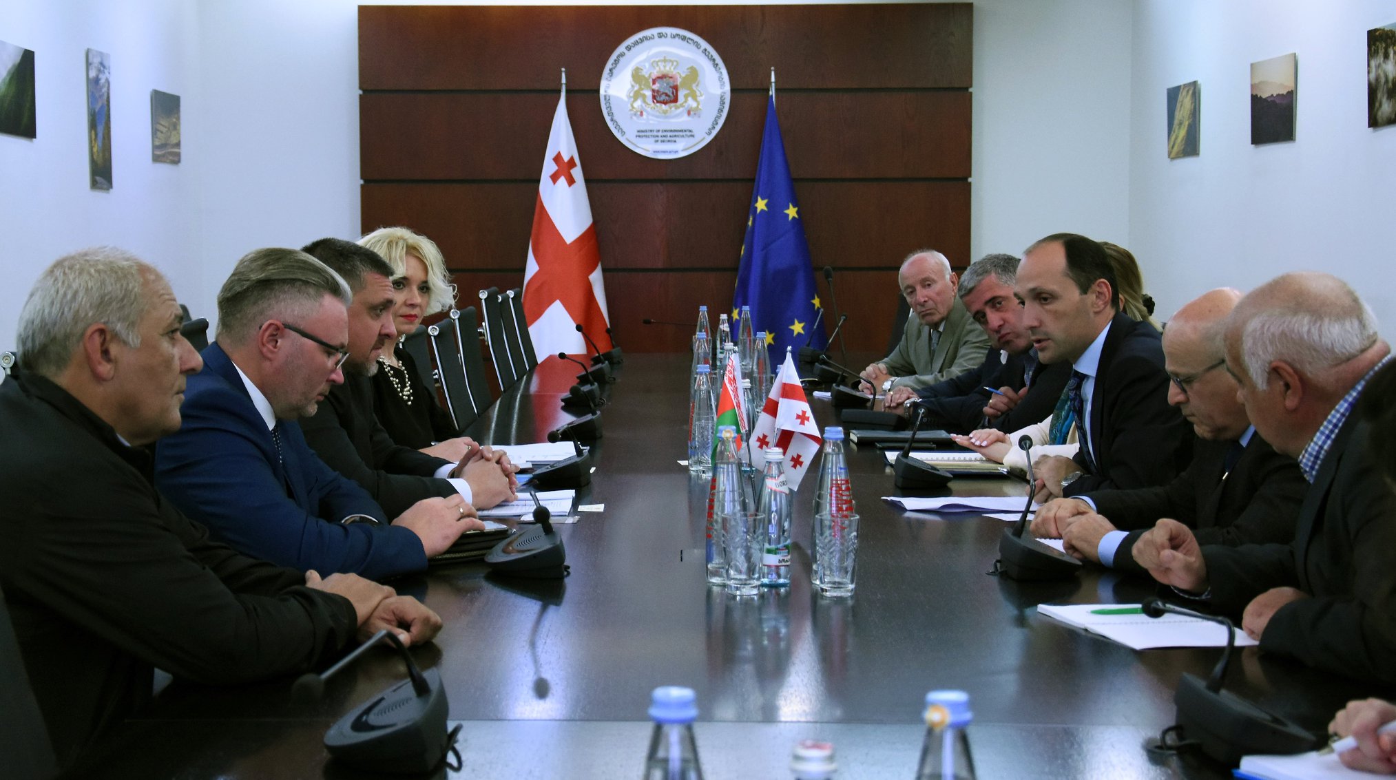 გარემოს დაცვისა და სოფლის მეურნეობის სამინისტროში გამართულ შეხვედრას მინისტრის მოადგილეები იური ნოზაძე, ხატია წილოსანი და შესაბამისი უწყების ხელმძღვანელი პირები ესწრებოდნენ