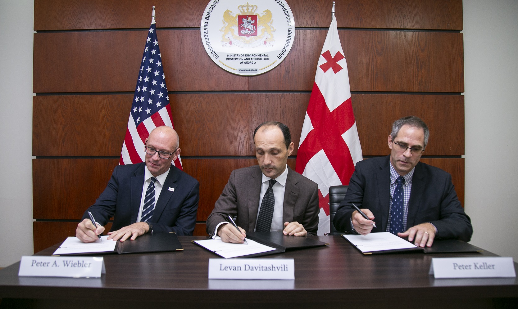 შეთანხმებას ხელი გარემოს დაცვისა და სოფლის მეურნეობის მინისტრმა, ლევან დავითაშვილმა, USAID-ის მისიის დირექტორმა, პიტერ ვიბლერმა და აშშ-ის შინაგანი დეპარტამენტის წარმომადგენელმა, პროექტის ხელმძღვანელმა, პიტერ ქელერმა მოაწერეს.