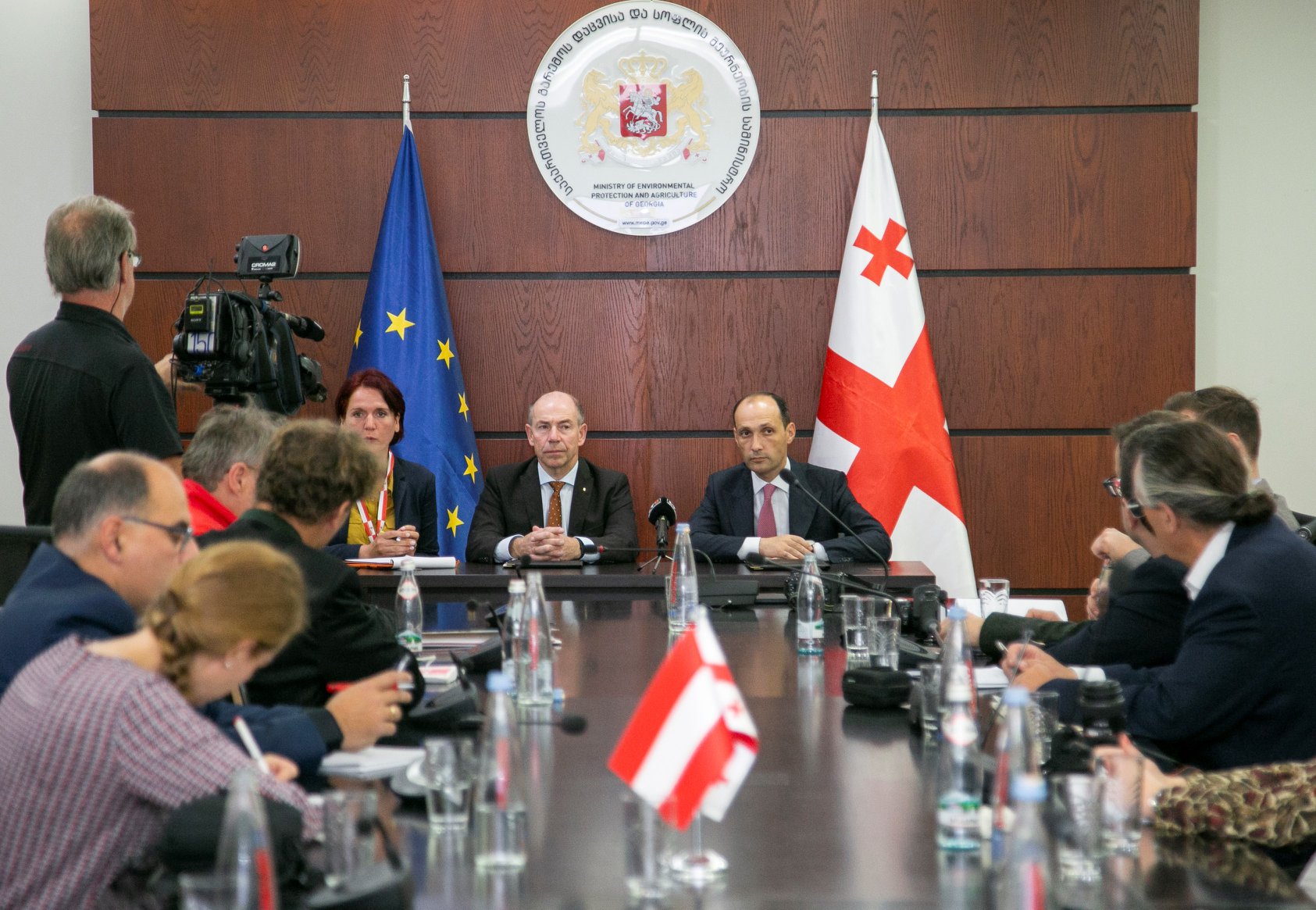 გარემოს დაცვისა და სოფლის მეურნეობის სამინისტროში გამართულ შეხვედრას ავსტრიის ელჩი საქართველოში არად ბენკო, ავსტრიის განვითარების სააგენტოს თბილისი ოფისის ხელმძღვანელი გერჰარდ შაუმბერგერი, მინისტრის მოადგილეები იური ნოზაძე, ხატია წილოსანი და შესაბამისი სამსახურის წარმომადგენლები ესწრებოდნენ.