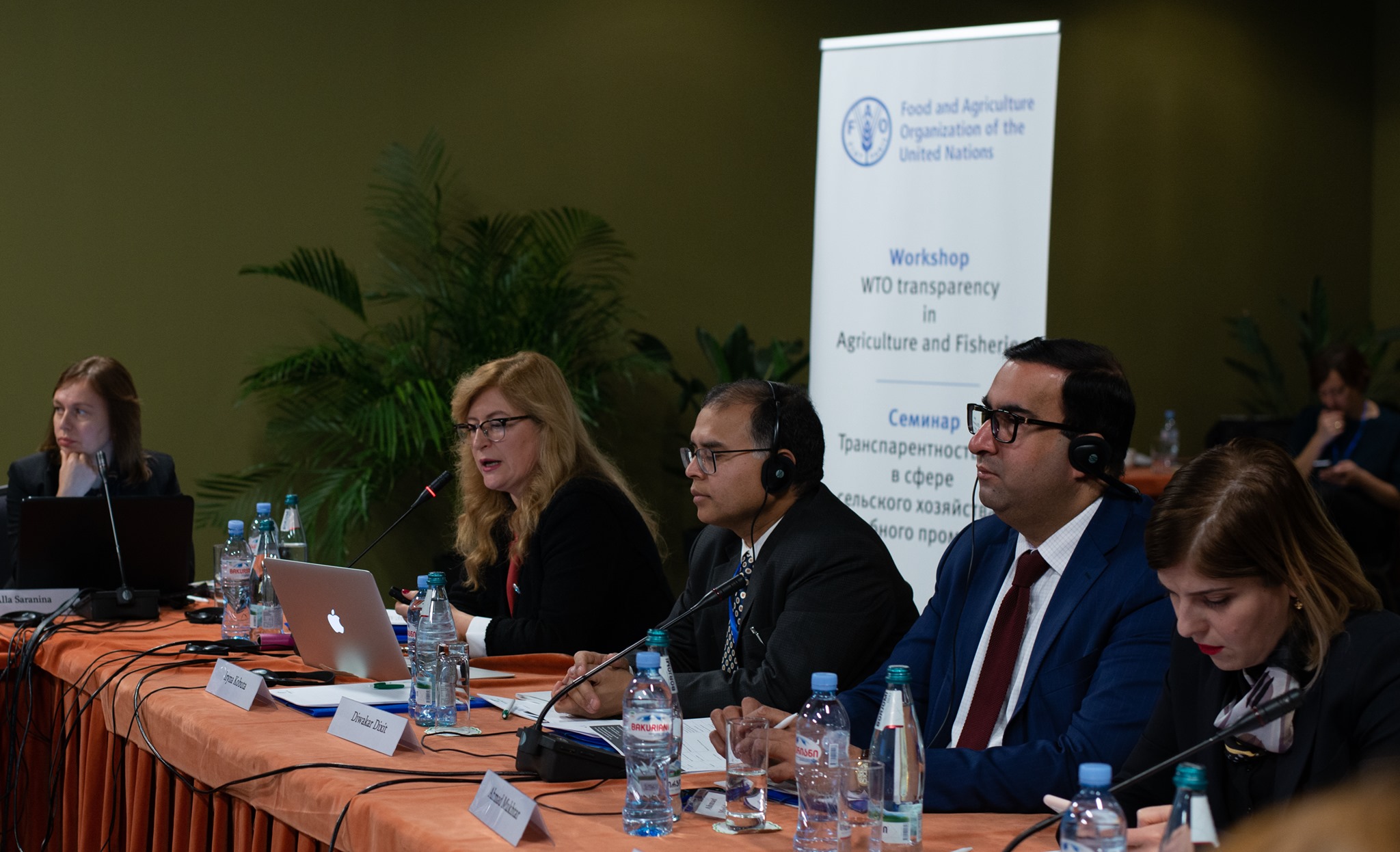 21-22 ნოემბერს, გაეროს სურსათისა და სოფლის მეურნეობის ორგანიზაციის (FAO) სათაო ოფისის (რომი) ორგანიზებით, თბილისში, რეგიონული სამუშაო შეხვედრა თემაზე: „მსოფლიო სავაჭრო ორგანიზაციის (WTO) გამჭვირვალობის მოთხოვნები სოფლის მეურნეობასა და თევზის მრეწველობაში“ გაიმართა.შეხვედრა გარემოს დაცვისა და სოფლის მეურნეობის მინისტრის მოადგილემ, ხატია წილოსანმა გახსნა. ღონისძიებას მსოფლიო სავაჭრო ორგანიზაციის (WTO) წარმომადგენელი დივაკარ დიქსიტი, გაეროს სურსათისა და სოფლის მეურნეობის ორგანიზაციის (FAO) წარმომადგენლები აჰმად მუხტარი, მარსიო კასტრო დე სოზა და ირინა კობუტა უძღვებოდნენ.