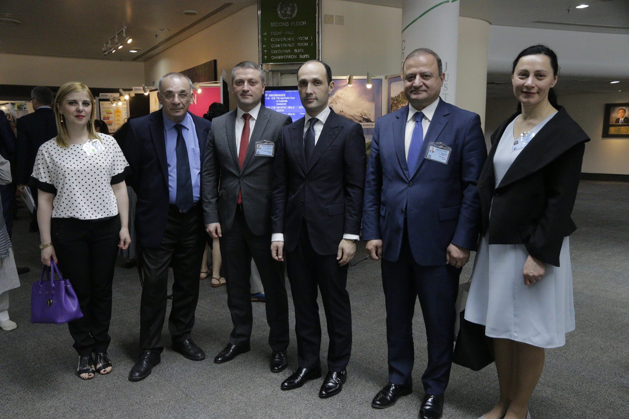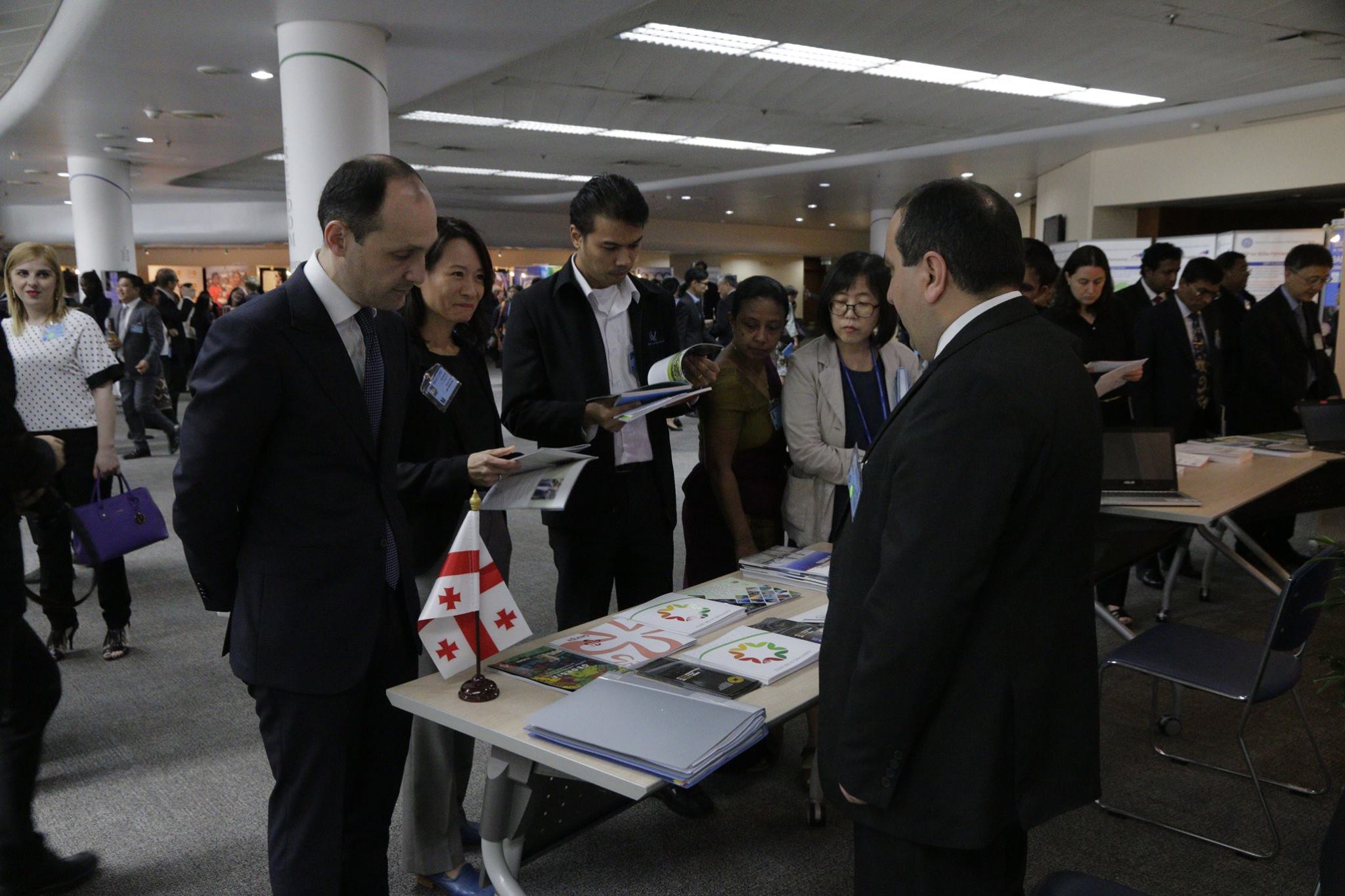 ESCAP-ის შტაბბინაში სპეციალურად მოწყობილ პარტნიორების პავილიონში, საქართველოს სტენდზე, საქართველოს საგარეო უწყებამ განხორციელებული წარმატებული პროექტების შესახებ პრეზენტაცია წარმოადგინა; გაიმართა ქართული ღვინისა და ტკბილეულის დეგუსტაცია.