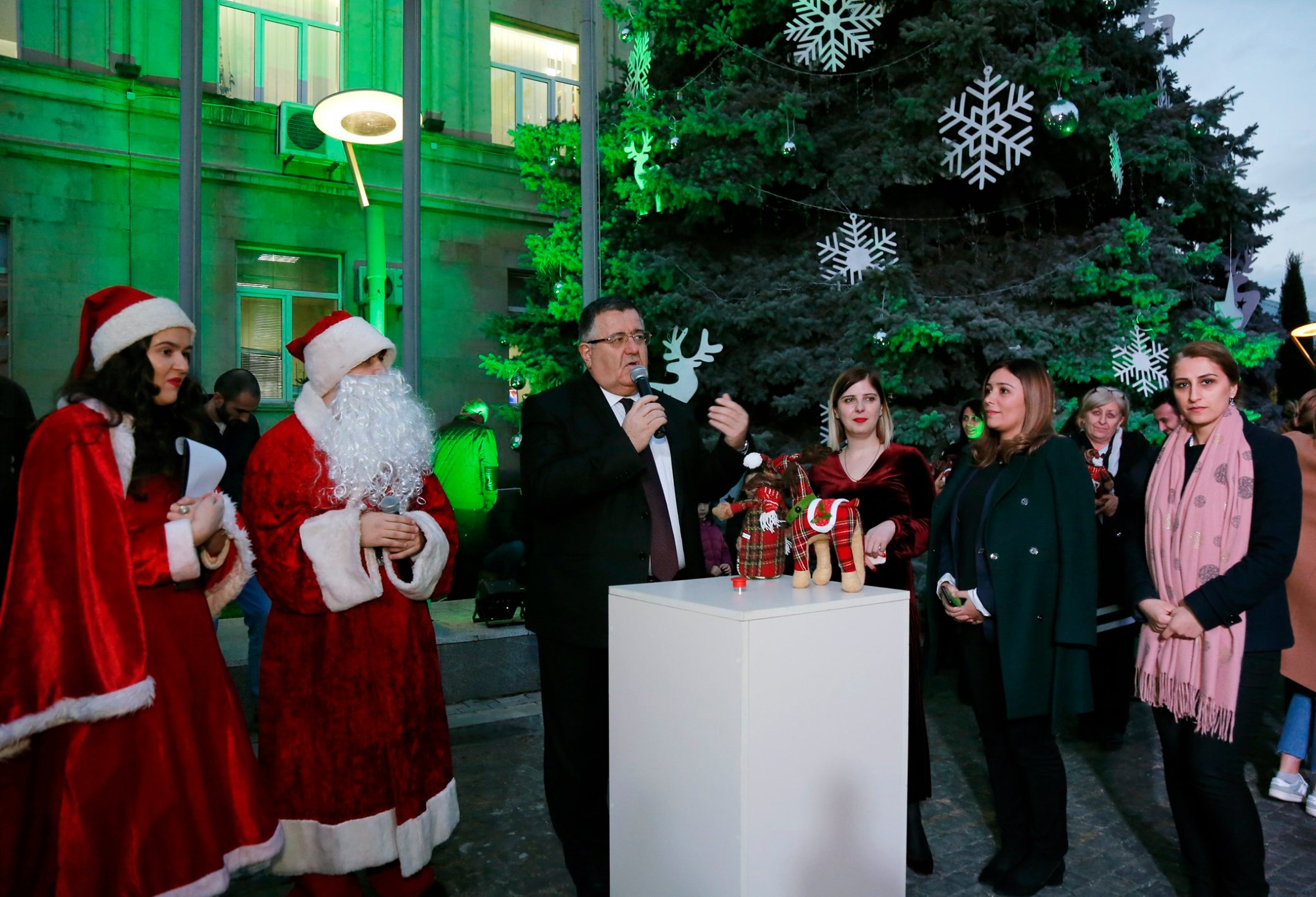 ნაძვის ხის საზეიმოდ ანთების ღონისძიებას მინისტრის მოადგილეები და უწყების ხელმძღვანელები დაესწრნენ. გარემოს დაცვისა და სოფლის მეურნეობის პირველმა მოადგილემ გიორგი ხანიშვილმა მისალოცი სიტყვით გამოსვლისას თანამშრომლებსა და მათ შვილებს დამდეგი შობა-ახალი წელი მიულოცა.გიორგი ხანიშვილმა წინასაახალწლოდ ნაძვის ხეების ჭრის პრევენციის მნიშვნელობაზე და ამ მიზნით დაწყებულ კამპანიაში „ნუ მოჭრი-მორთე“ ახალგაზრდების ჩართულობის მნიშვნელობაზე ისაუბრა.