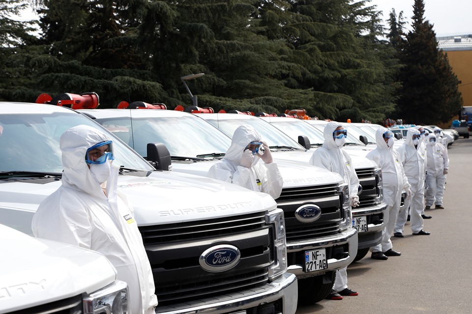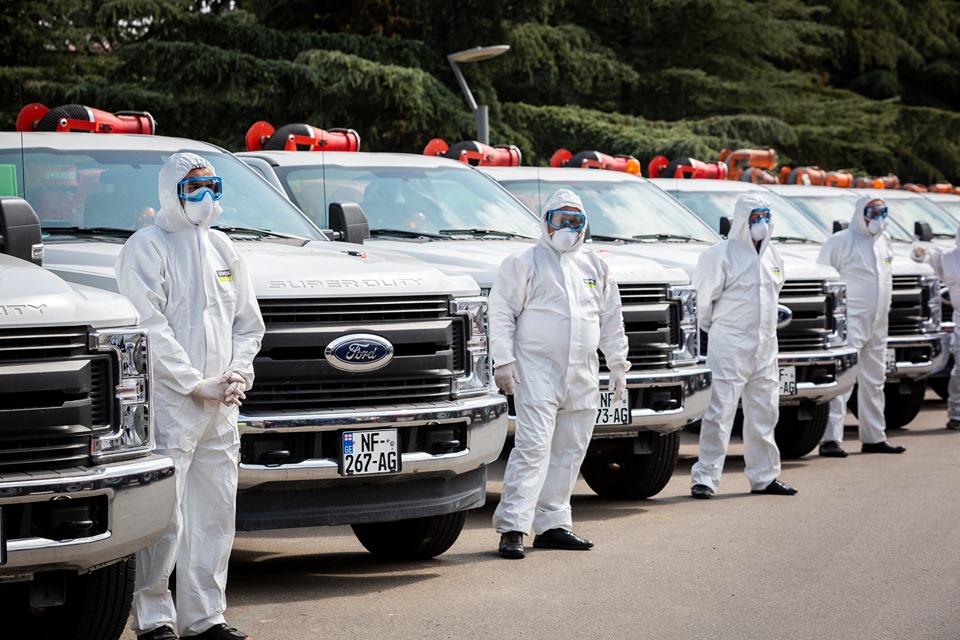 „კორონავირუსთან ბრძოლის ღონისძიებების დაწყების პირველივე დღეებიდან, სურსათის ეროვნული სააგენტოს სპეციალური ტექნიკა გამოყენებულია საზღვრებზე, სადაც ყველა ტვირთის შემოსვლისას დამუშავება ხდება. სააგენტოს სპეციალისტები ის ადამიანები არიან, რომლებიც არაერთ რთულ ღონისძიებაში იღებენ მონაწილეობას და დიდი გამოცდილება აქვთ. ჩვენი სპეციალისტები ბოლნისსა და მარნეულში, კარანტინში შემსვლელ-გამომსვლელ მანქანებსაც ამუშავებენ სპეციალური სადეზინფექციო ხსნარებით, რომელიც დაავადებათა კონტროლის ცენტრთან არის შეთანხმებული და აბსოლუტურად უვნებელია მოსახლეობისთვის. ჩვენი მძიმე ტექნიკა დღეს საკარანტინო ზონაში გაიგზავნება, სადაც დიდი სივრცეების დამუშავებას მოვახდენთ. რაც შეეხება თბილისს, მოხდება კრიტიკული საჯარო ინფრასტრუქტურის დამუშავება, რათა დაავადების გავრცელების რისკი მინიმუმამდე დავიყვანოთ”, - განაცხადა გარემოს დაცვისა და სოფლის მეურნეობის მინისტრმა, ლევან დავითაშვილმა.