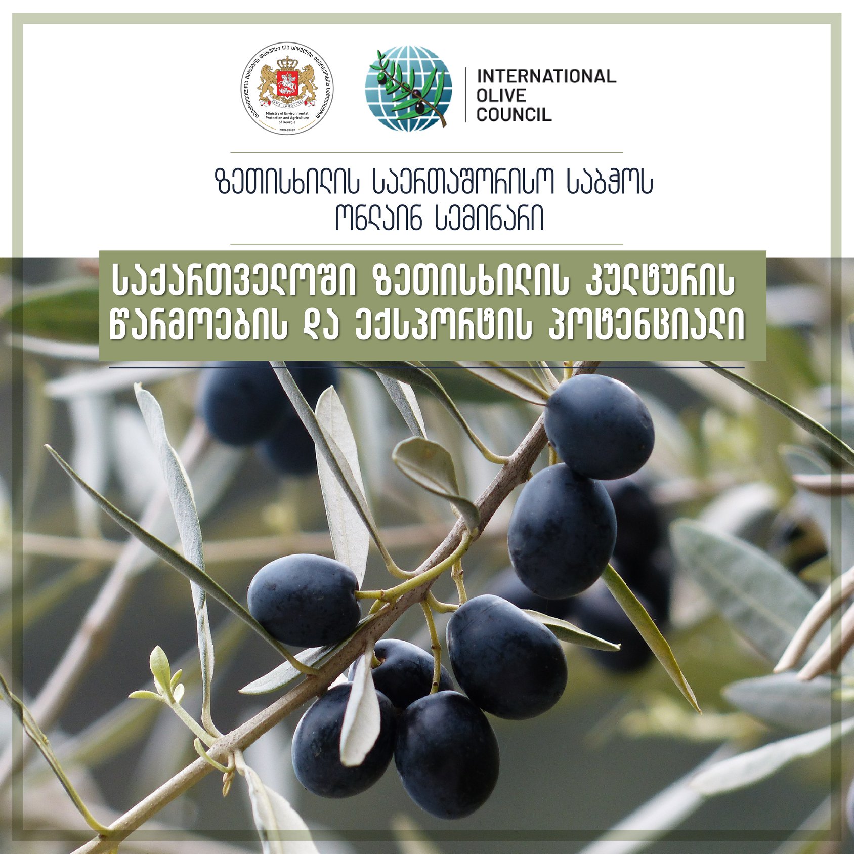 საქართველო ზეთისხილის საერთაშორისო საბჭოს წევრი 2019 წელს გახდა და, ამავე წელს, ჩვენი ქვეყანა ზეთისხილის საერთაშორისო საბჭოს 2020 წლის პრეზიდენტ ქვეყანად ოფიციალურად დასახელდა.