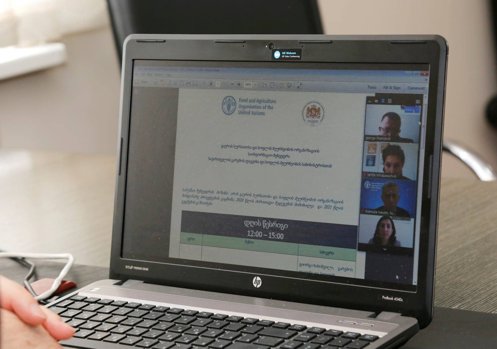 გარემოს დაცვისა და სოფლის მეურნეობის მინისტრის პირველი მოადგილე გიორგი ხანიშვილი, ონლაინ შეხვედრაზე, გაეროს სურსათისა და სოფლის მეურნეობის ორგანიზაციის (FAO) მიმდინარე პროექტების ანგარიშს და სამომავლო გეგმების შესახებ ინფორმაციას გაეცნო.