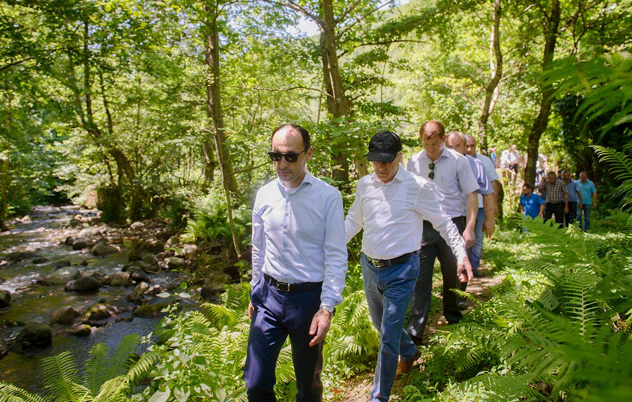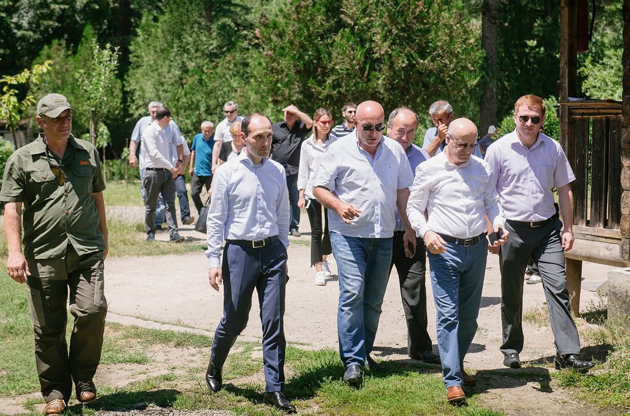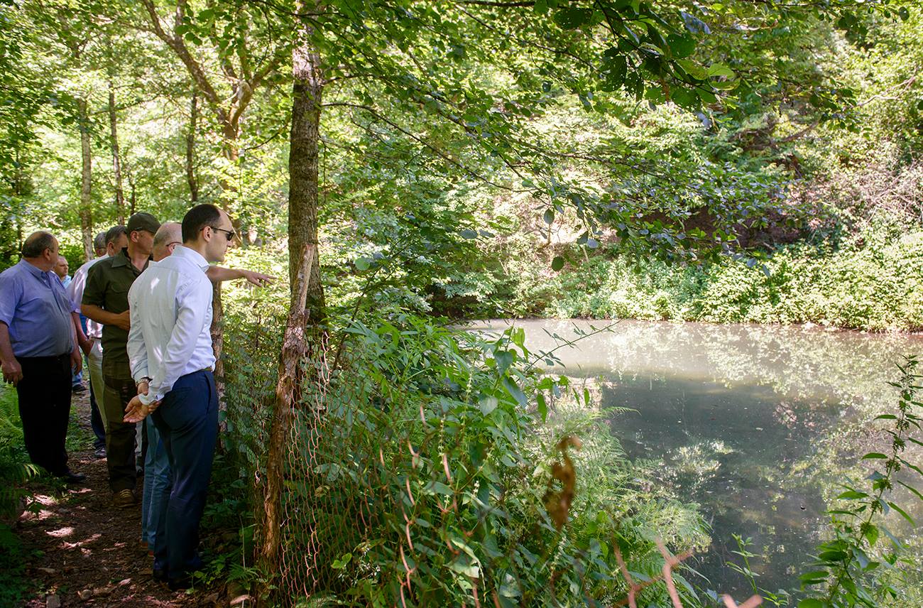 გარემოს დაცვისა და სოფლის მეურნეობის სამინისტროს ეროვნული საშენი მეურნეობის დირექტორი რევაზ ბეჟაშვილი და ადგილობრივი ხელისუფლების წარმომადგენლები.