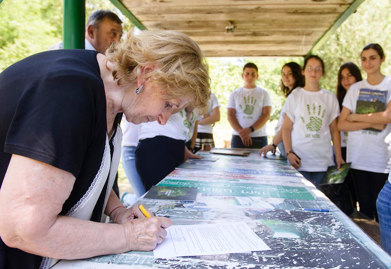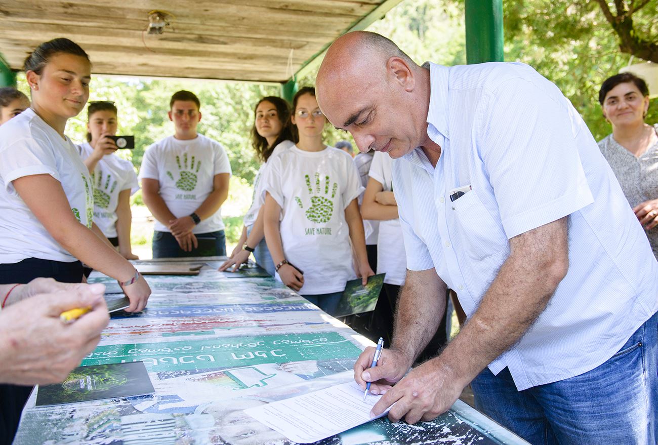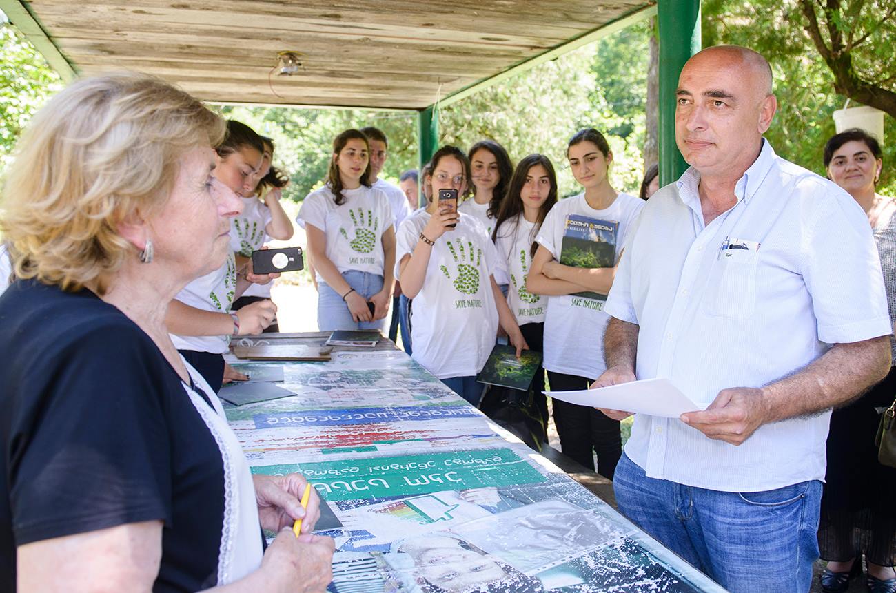 გარემოს დაცვისა და სოფლის მეურნეობის სამინისტროს ეროვნული საშენი მეურნეობის დირექტორი რევაზ ბეჟაშვილი და ადგილობრივი ხელისუფლების წარმომადგენლები.
