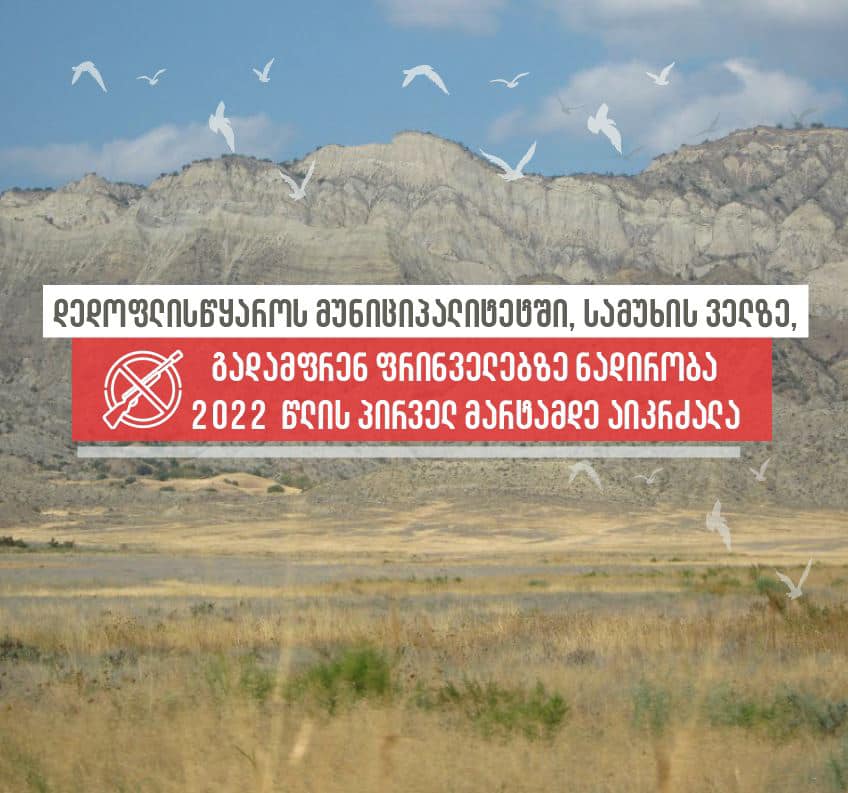 დედოფლისწყაროს მუნიციპალიტეტში, სამუხის ველზე, გადამფრენ ფრინველებზე ნადირობა 2022 წლის პირველ მარტამდე აიკრძალა
