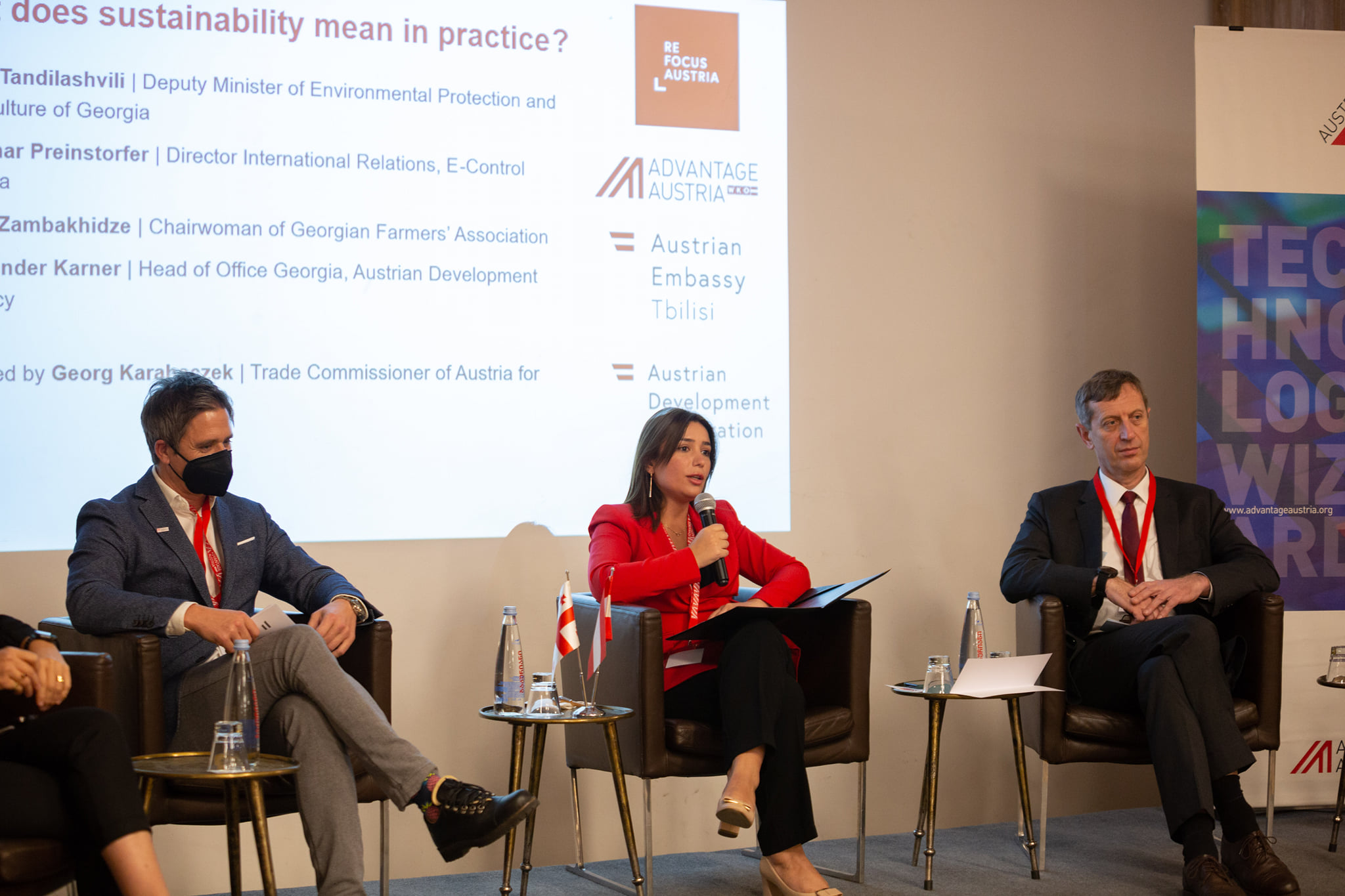 მონაწილეებმა ავსტრიული და ქართული ბიზნესსექტორის თანამშრომლობის და ბიზნესინოვაციებისა და მწვანე ეკონომიკის შესაძლებლობების საკითხები განიხილეს. ბიზნესფორუმის ფარგლებში, „Energy Globe Award” დაჯილდოება და სიმპოზიუმი „მდგრადი განვითარება პრაქტიკულ ჭრილში - ავსტრიული და ქართული გამოცდილებები“ გაიმართა. სიმპოზიუმზე ნინო თანდილაშვილმა კლიმატის ცვლილებებთან დაკავშირებით პრეზენტაცია წარმოადგინა.