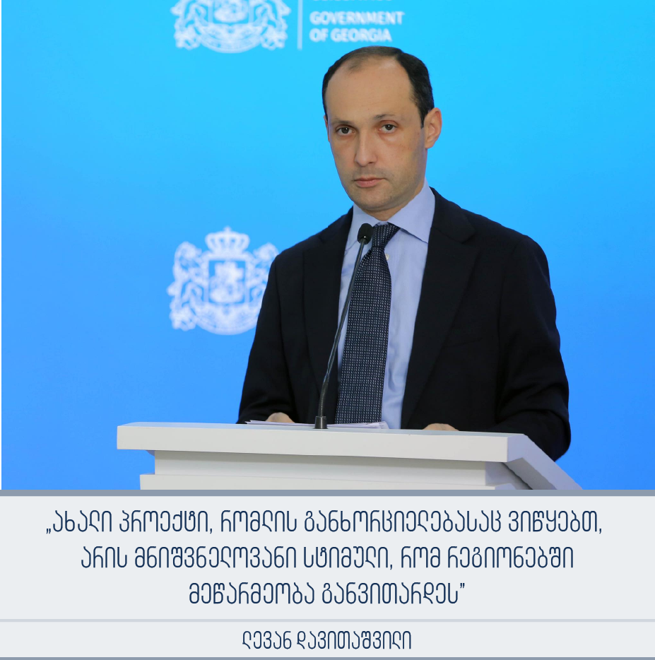 ლევან დავითაშვილი: „ახალი პროექტი, რომლის განხორციელებასაც ვიწყებთ, არის მნიშვნელოვანი სტიმული, რომ რეგიონებში მეწარმეობა განვითარდეს”