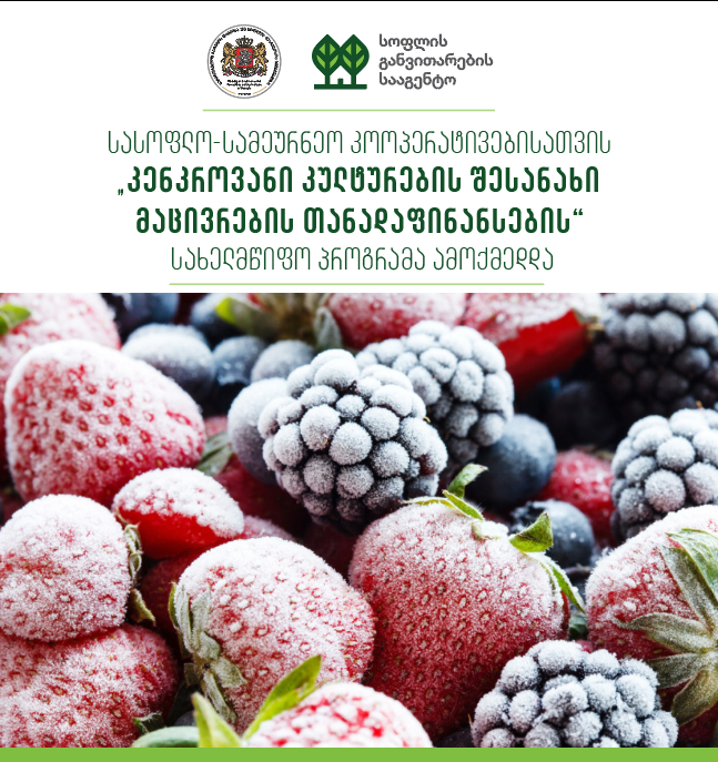 მთავრობის სხდომაზე მიღებული გადაწყვეტილებით, „სასოფლო-სამეურნეო კოოპერატივებისათვის კენკროვანი კულტურების შესანახი მაცივრების თანადაფინანსების“ სახელმწიფო პროგრამა ამოქმედდა