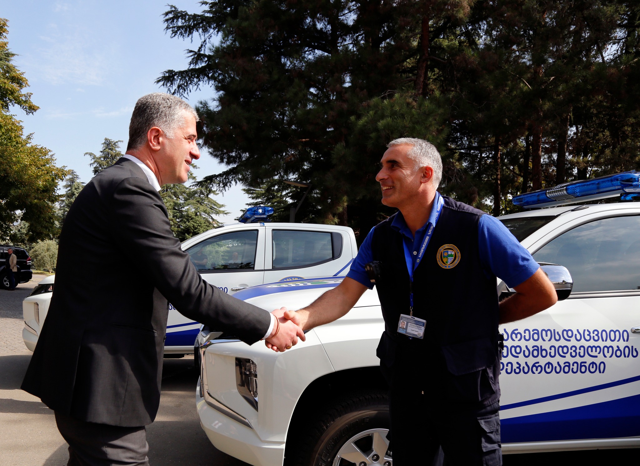 გარემოსდაცვითი ზედამხედველობის დეპარტამენტის ახალი ავტომობილები გარემოს დაცვისა და სოფლის მეურნეობის მინისტრმა, ოთარ შამუგიამ, მინისტრის მოადგილე კახა კაკაბაძემ და გარემოსდაცვითი ზედამხედველობის დეპარტამენტის უფროსმა, ლევან ჯღარკავამ დაათვალიერეს. პიკაპის ტიპის 22 ახალი ავტომობილი დედაქალაქის და რეგიონულ სამმართველოებს გადაეცემათ.